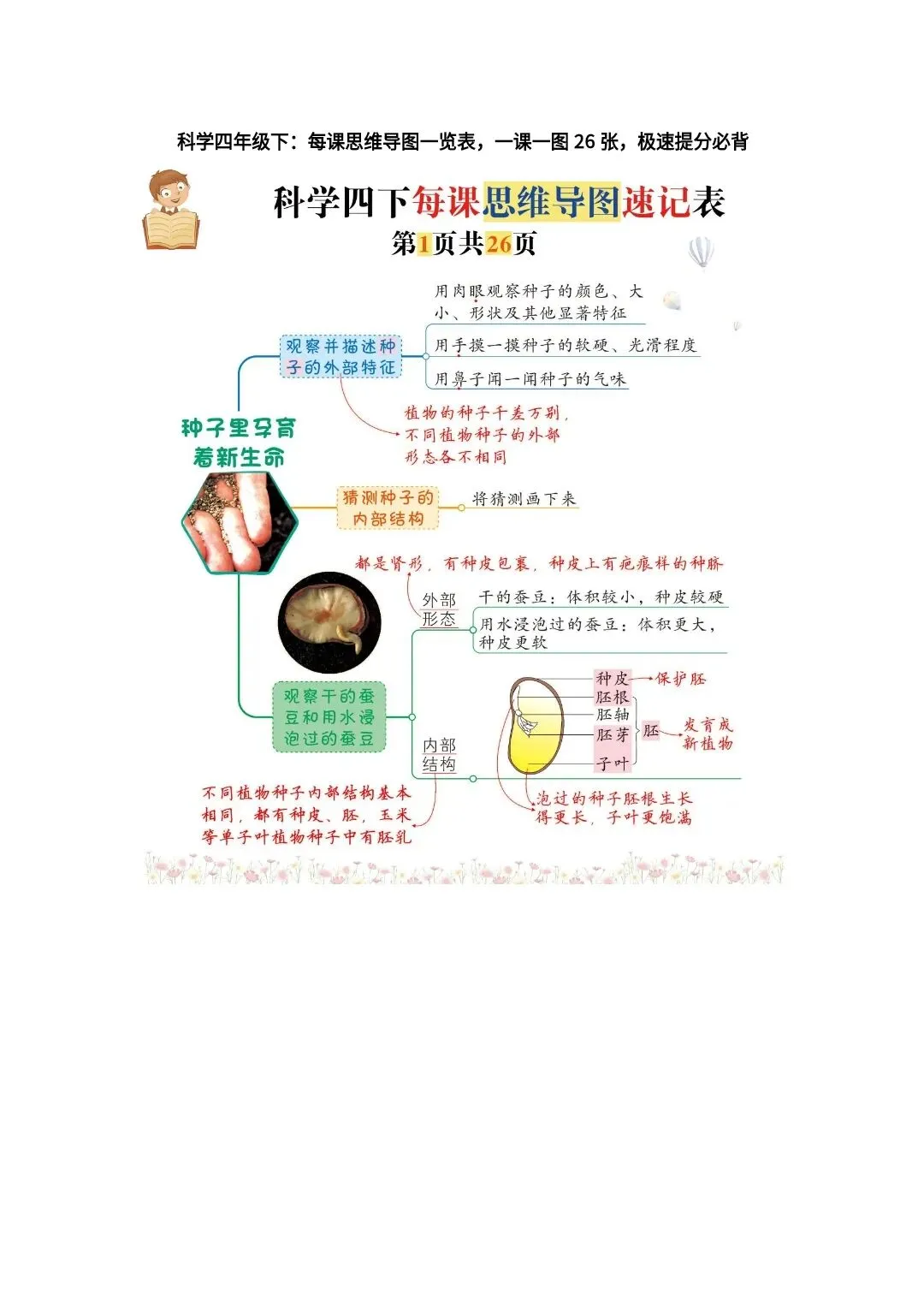 今日份分享四年级下册科学每课思维导图速记表(完整电子版可打印)!这份资产料已经整理成可打印版本,方便孩子随时翻看学习,建议家长先收藏,再转发给身边有需要的家庭,一起帮助孩子高效学习~
