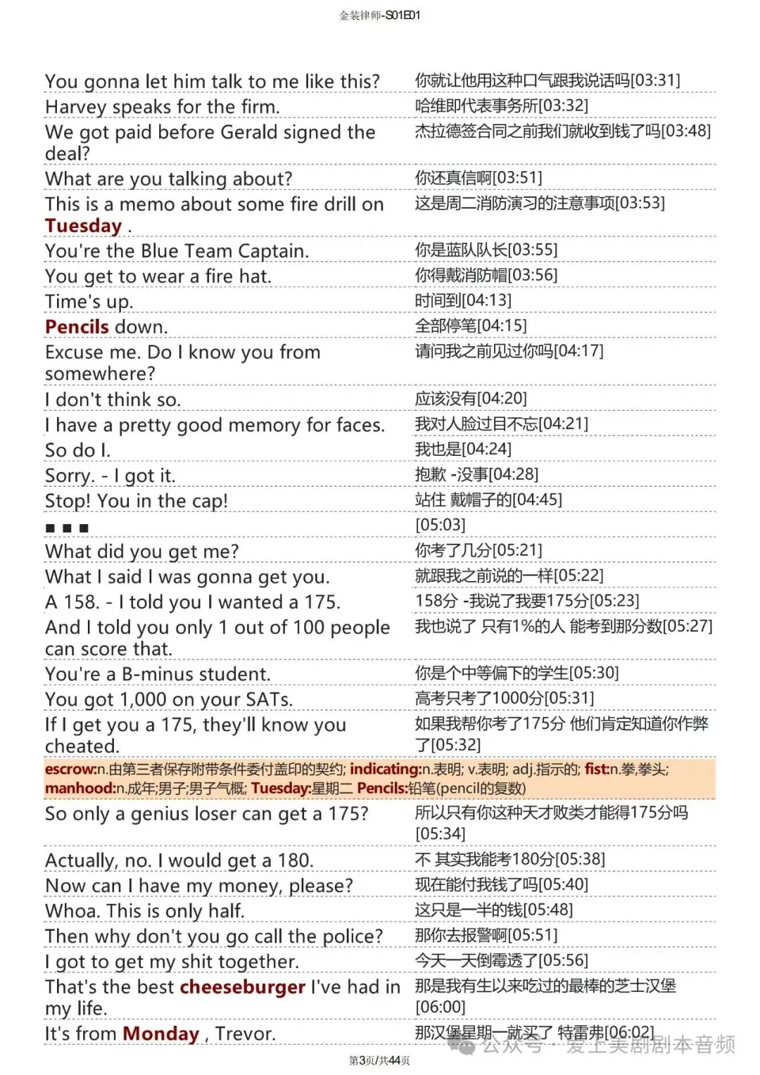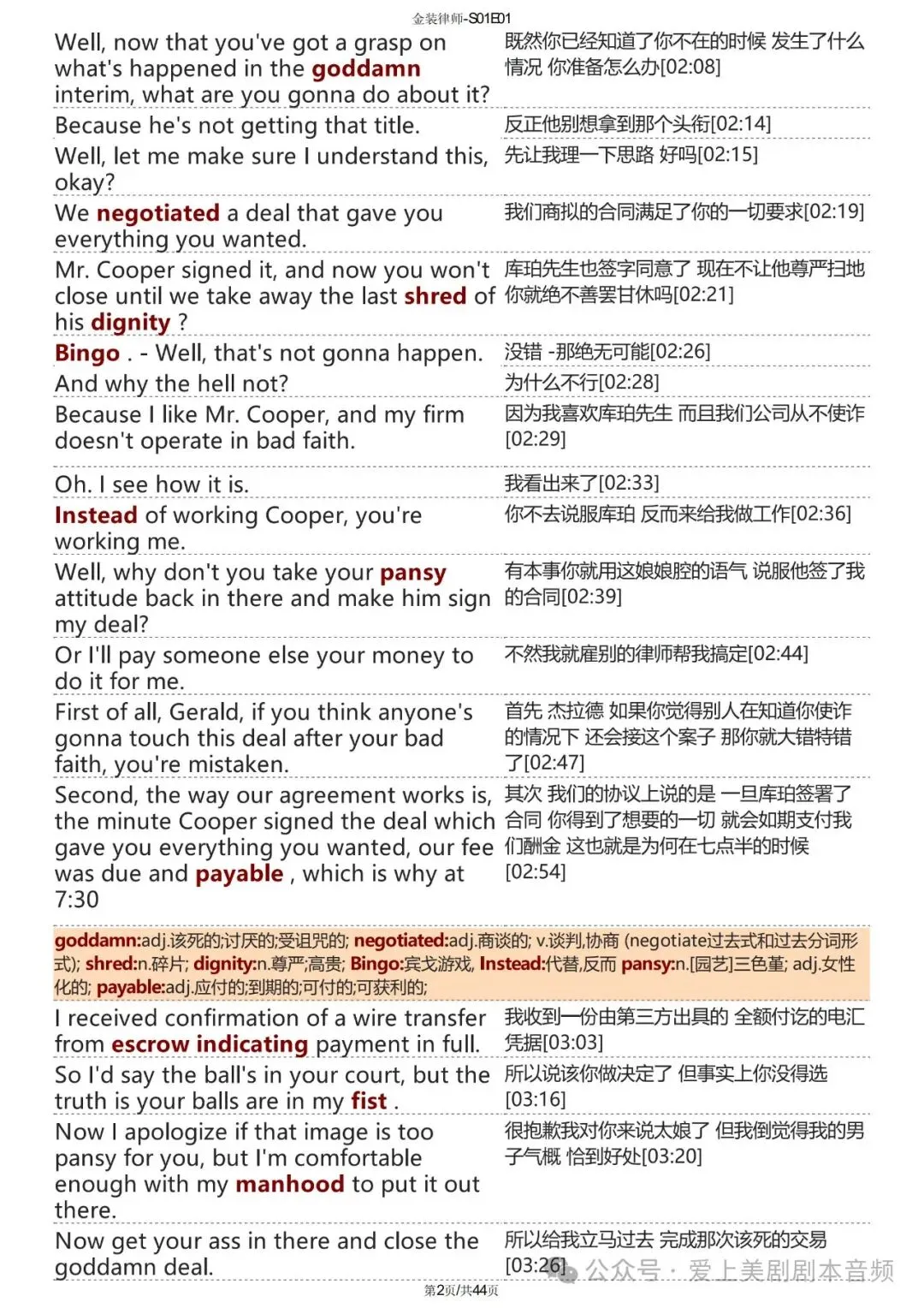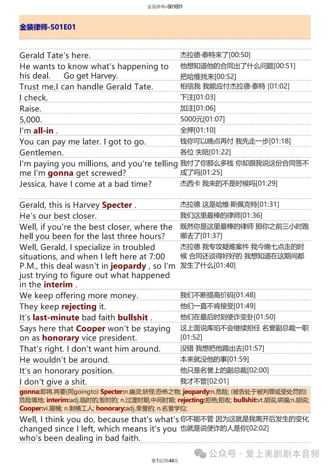 金装律师台词剧本下载pdf(双语精排版)全9季+mp3+单词注释