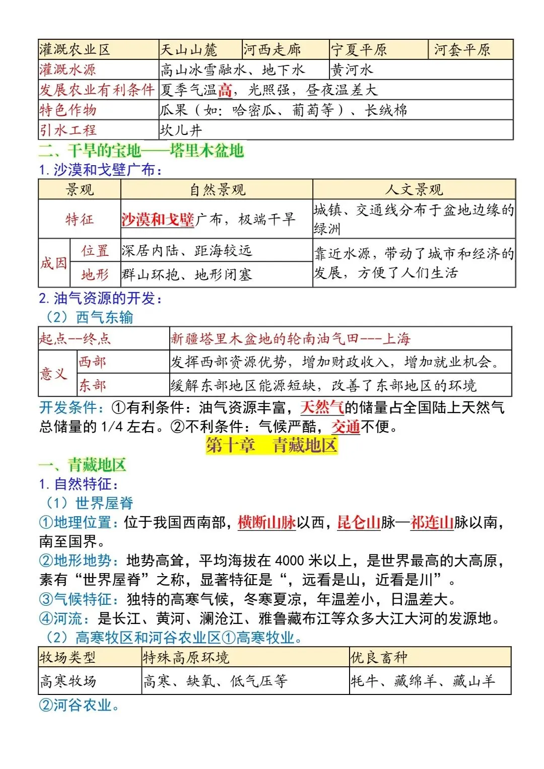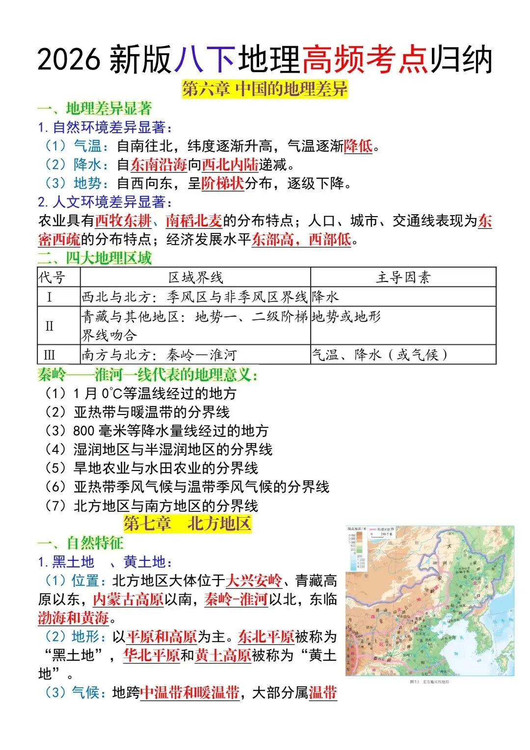 2026春新八年级下册地理高频考点归纳,电子版可打印!