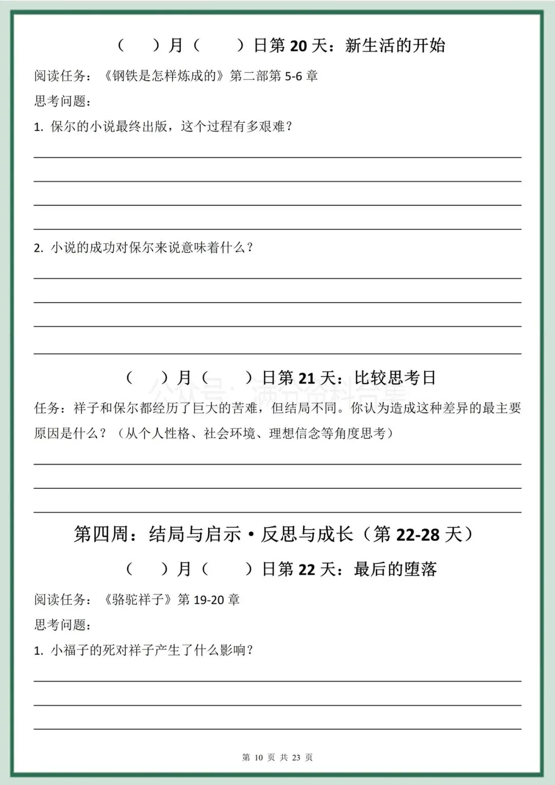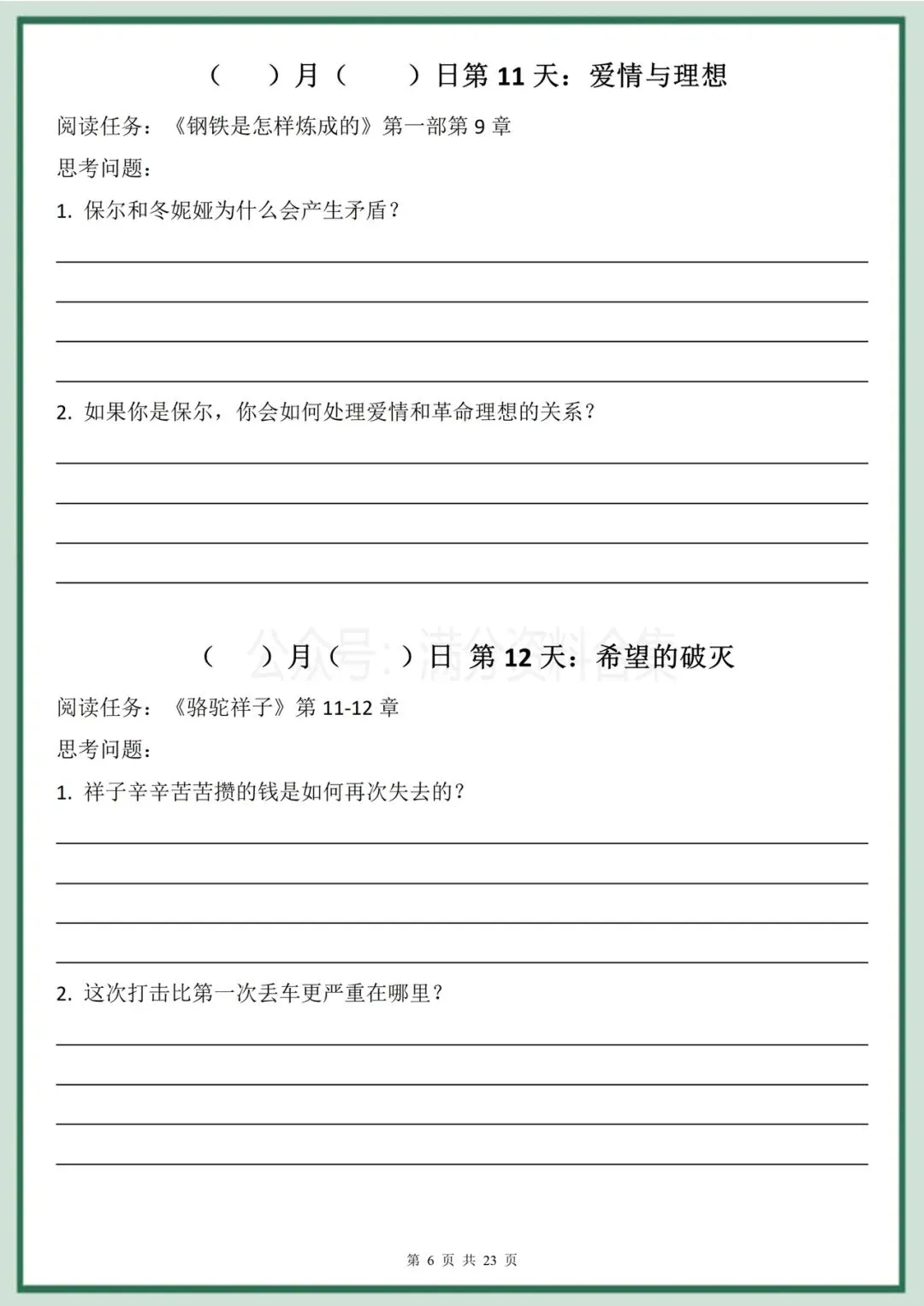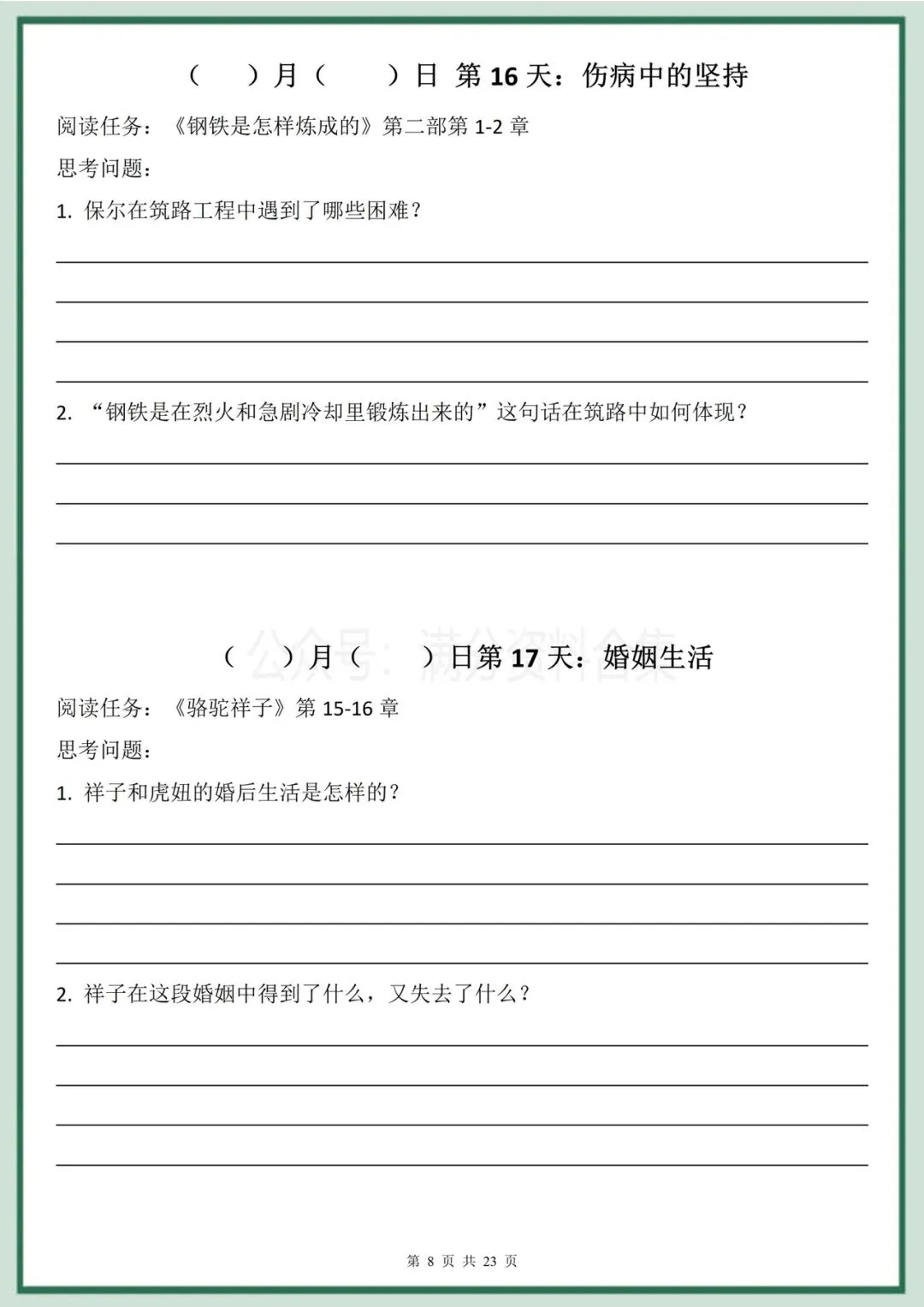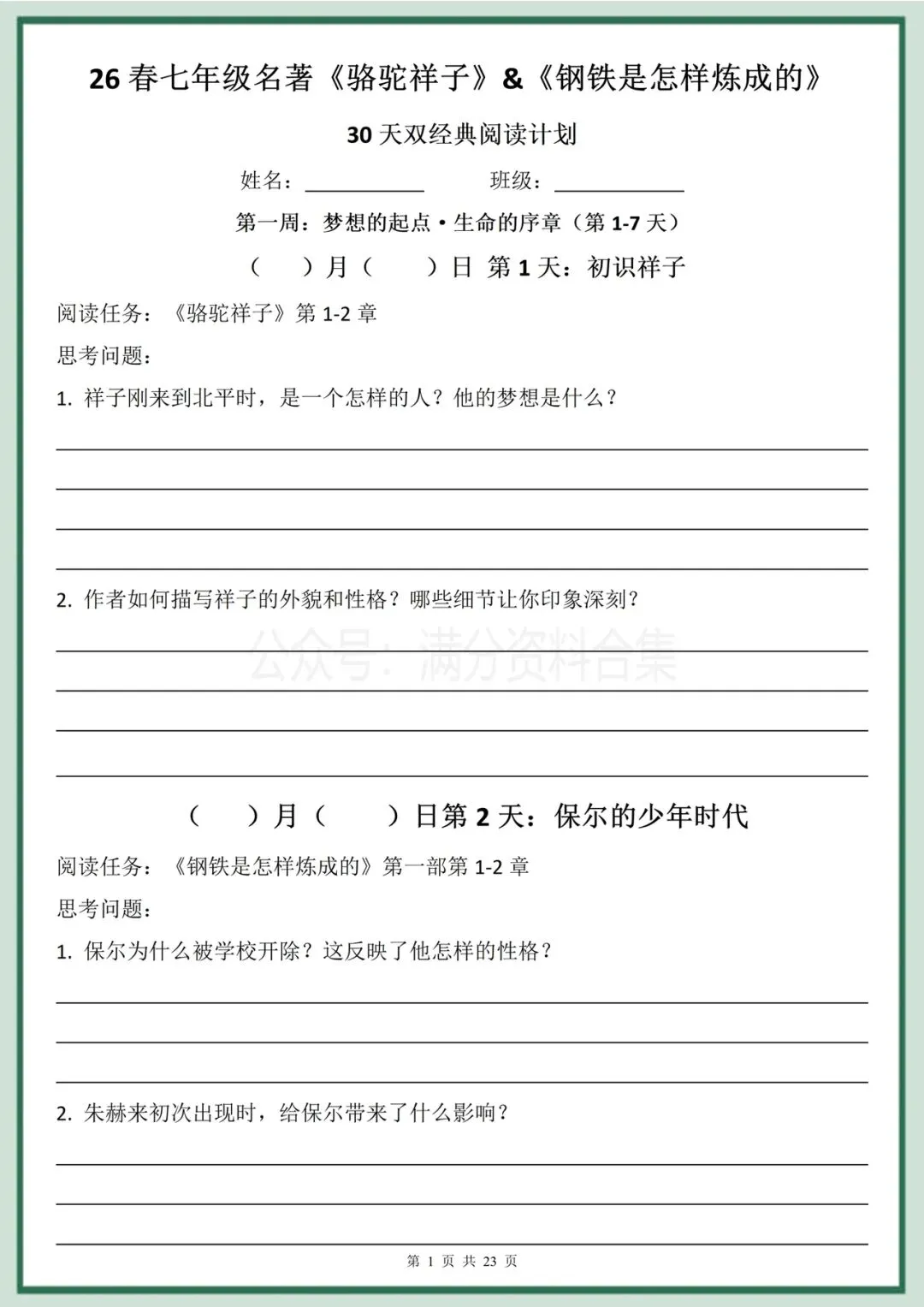 2026年春季最新版七年级下册语文名著阅读《骆驼祥子》《钢铁是怎样炼成的》30天双经典阅读计划(有答案)完整电子版科打印!