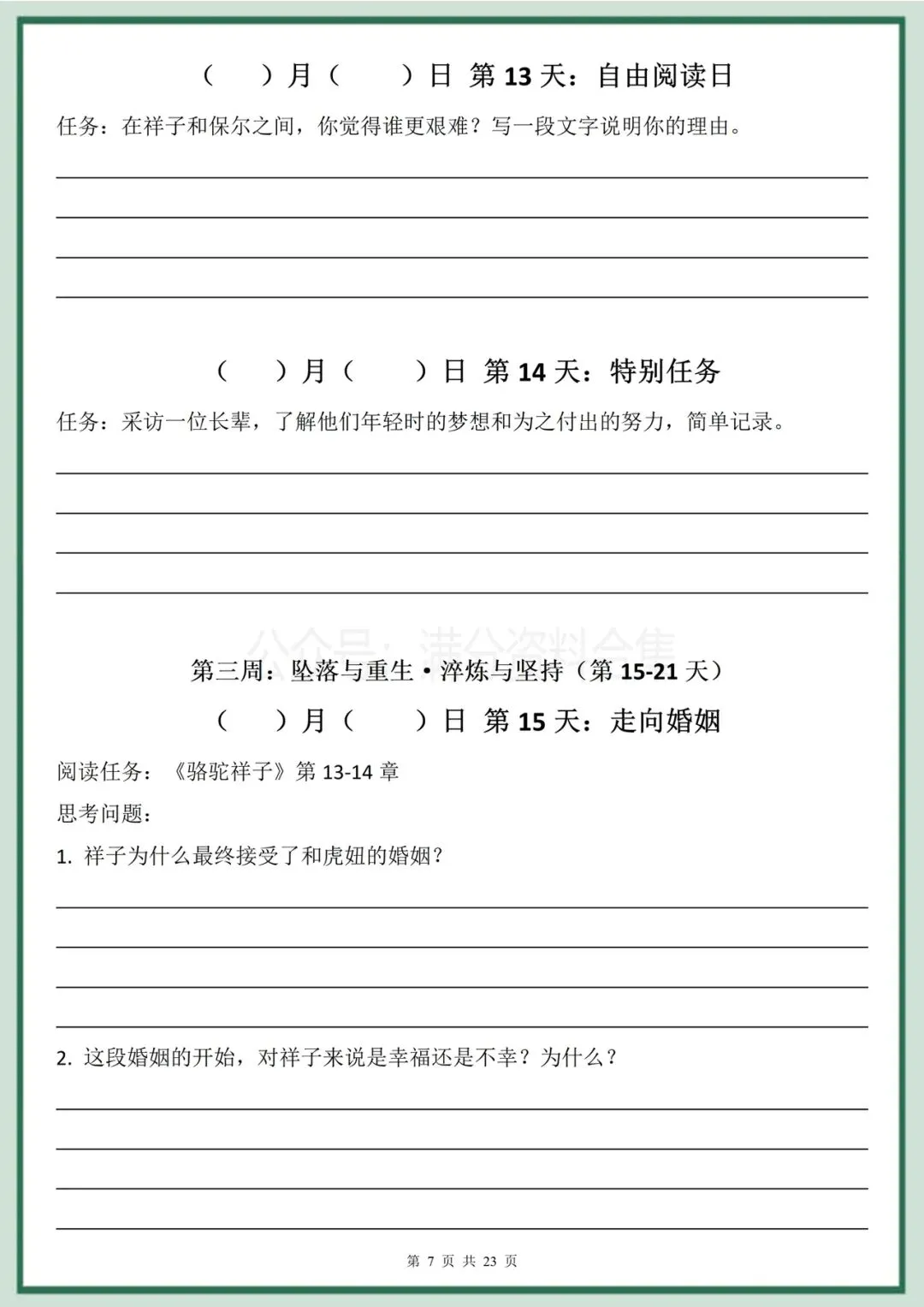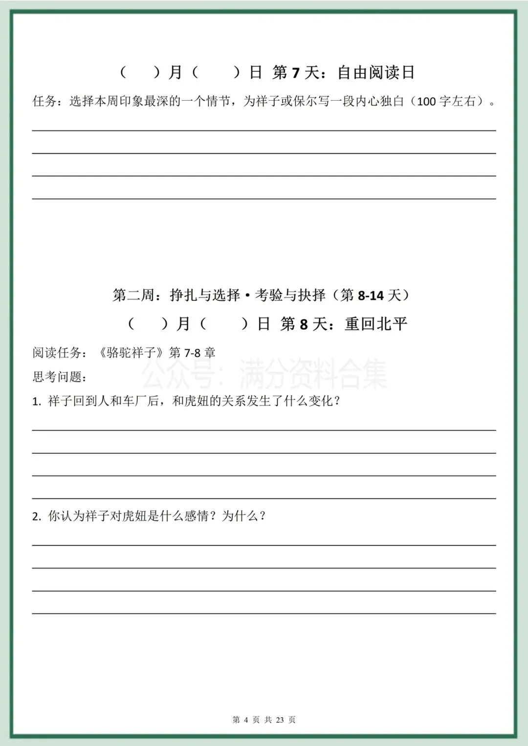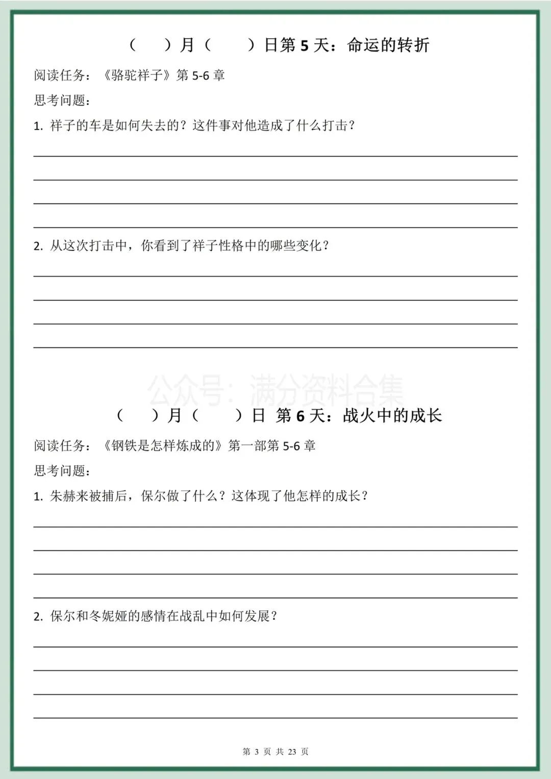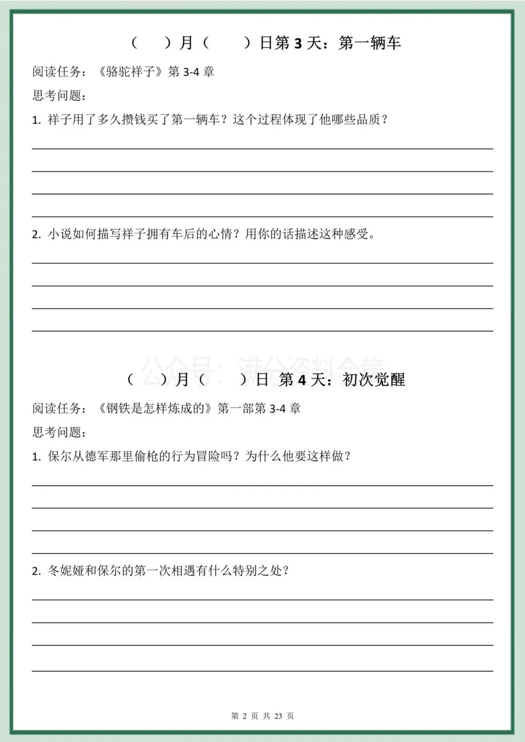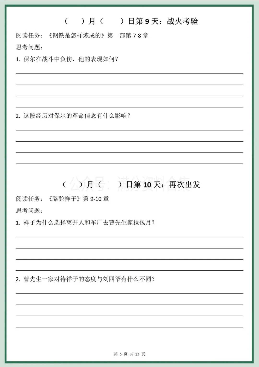 2026年春季最新版七年级下册语文名著阅读《骆驼祥子》《钢铁是怎样炼成的》30天双经典阅读计划(有答案)完整电子版科打印!