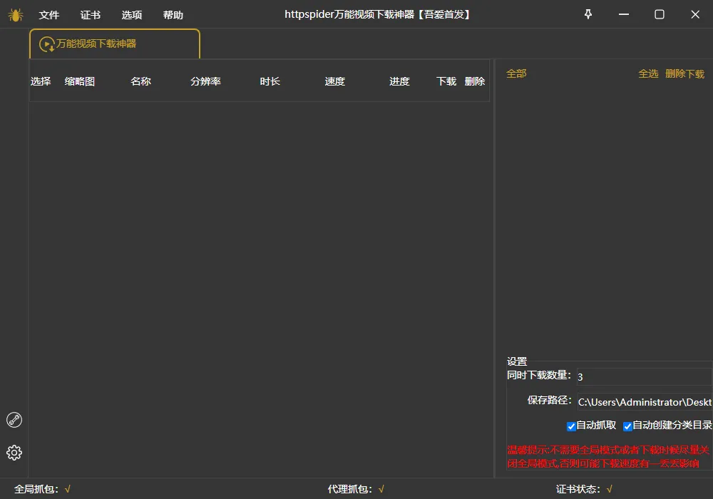 安装证书后,然后打开或者刷新你的视频,软件就可以抓取到你的视频下载链接。