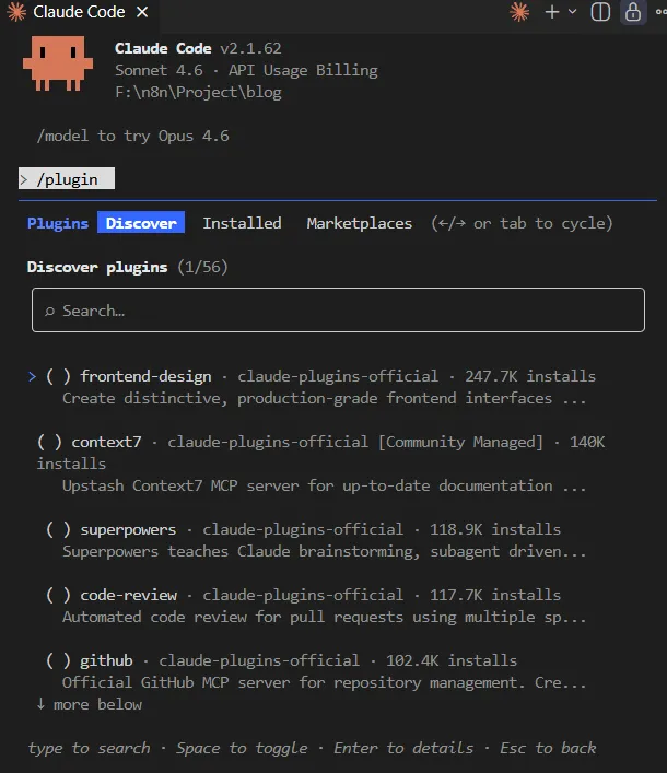/plugin,进 Discover Tab,找到你用的编程语言对应的 LSP 插件装上。哪怕只装这一个,你和 Claude 配合写代码的体验会明显不同。npm install -g pyright,Rust 用户检查 rust-analyzer 是否在 PATH。别被一个「找不到可执行文件」的报错挡在门外。