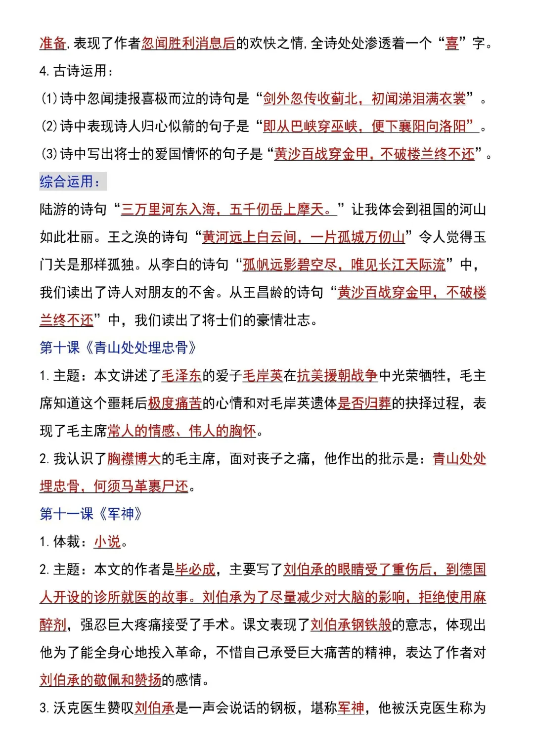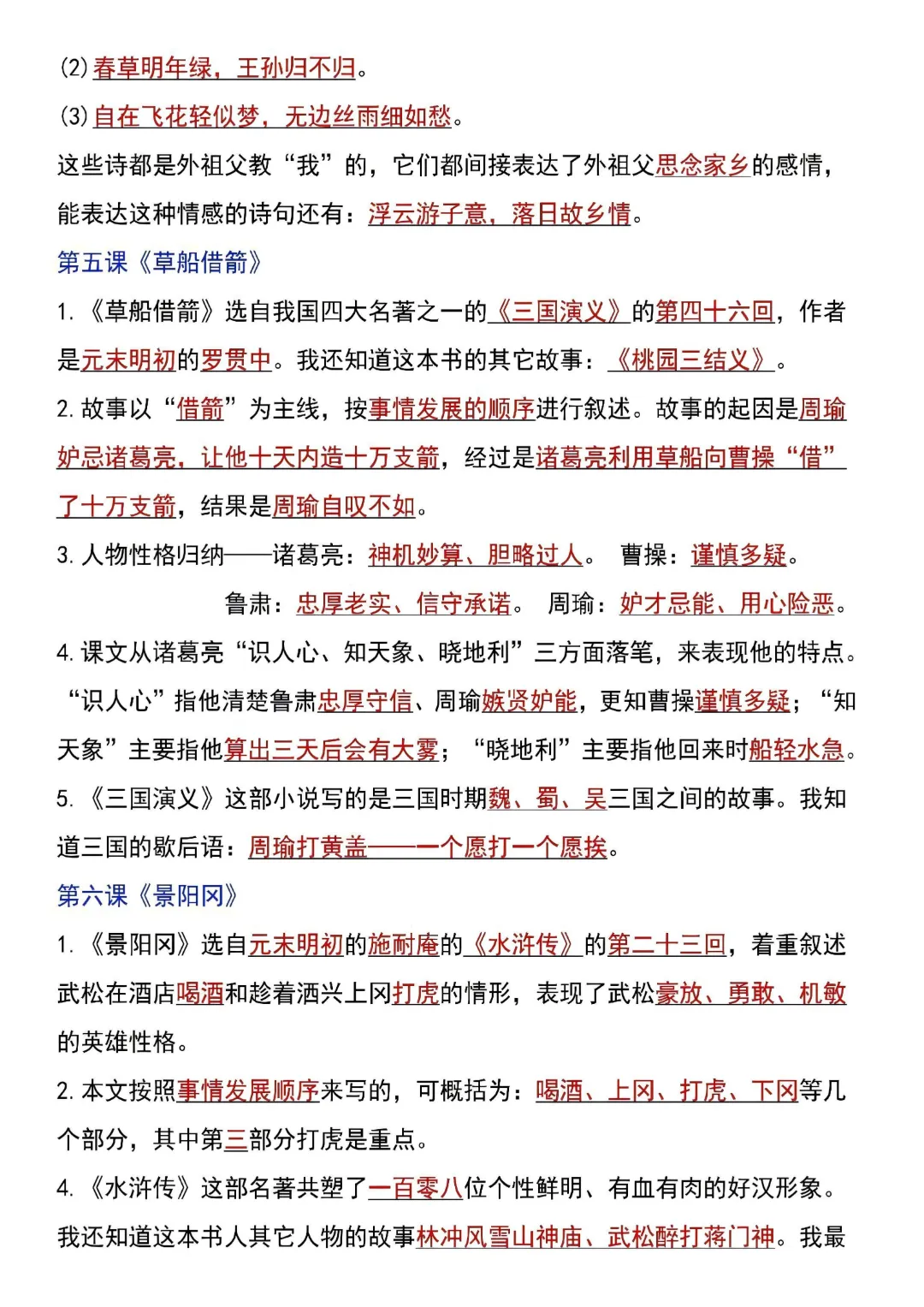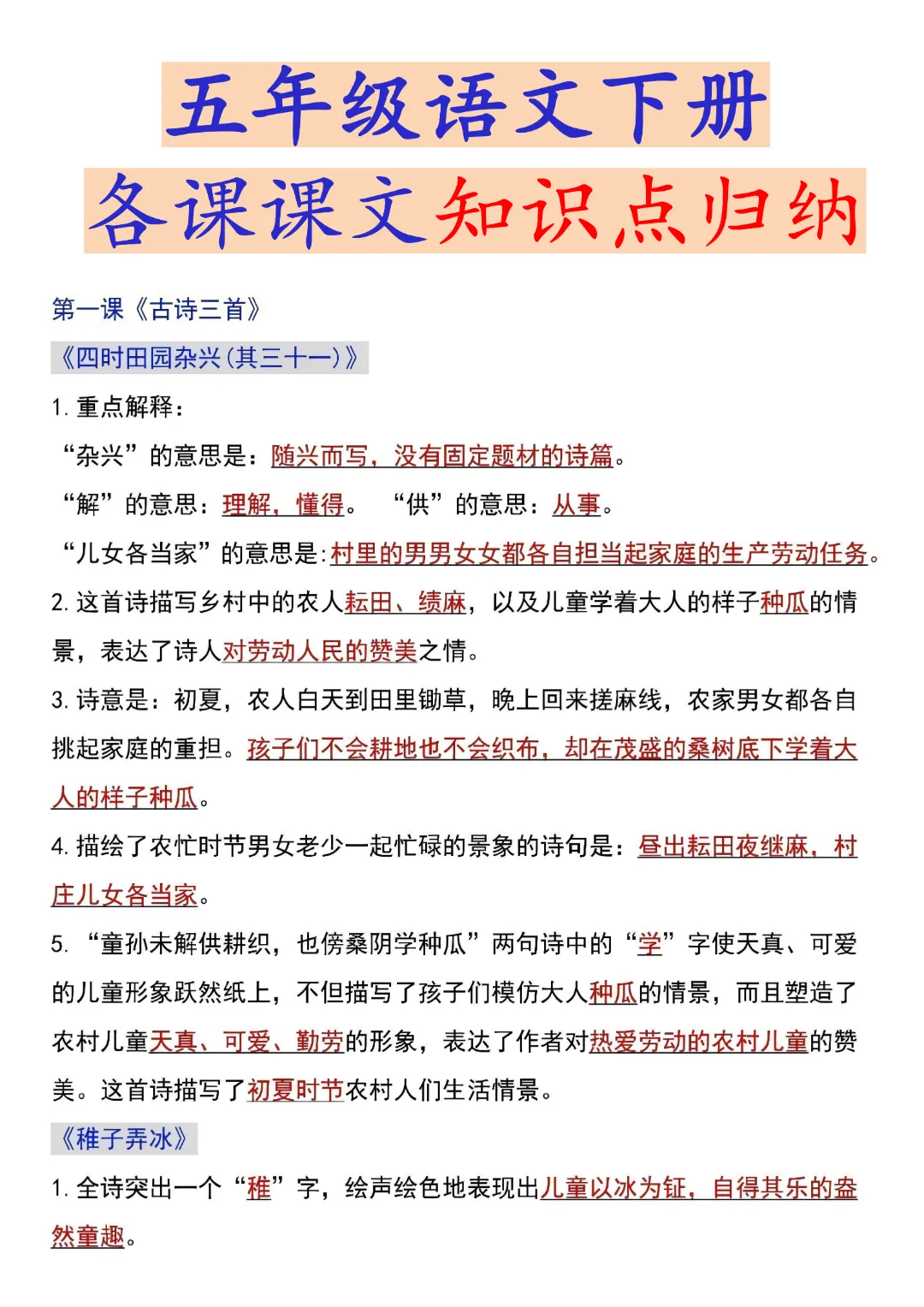 今天给大家分享的是:【五年级下册语文部编版】各课课文知识点归纳丨完整高清电子版可打印