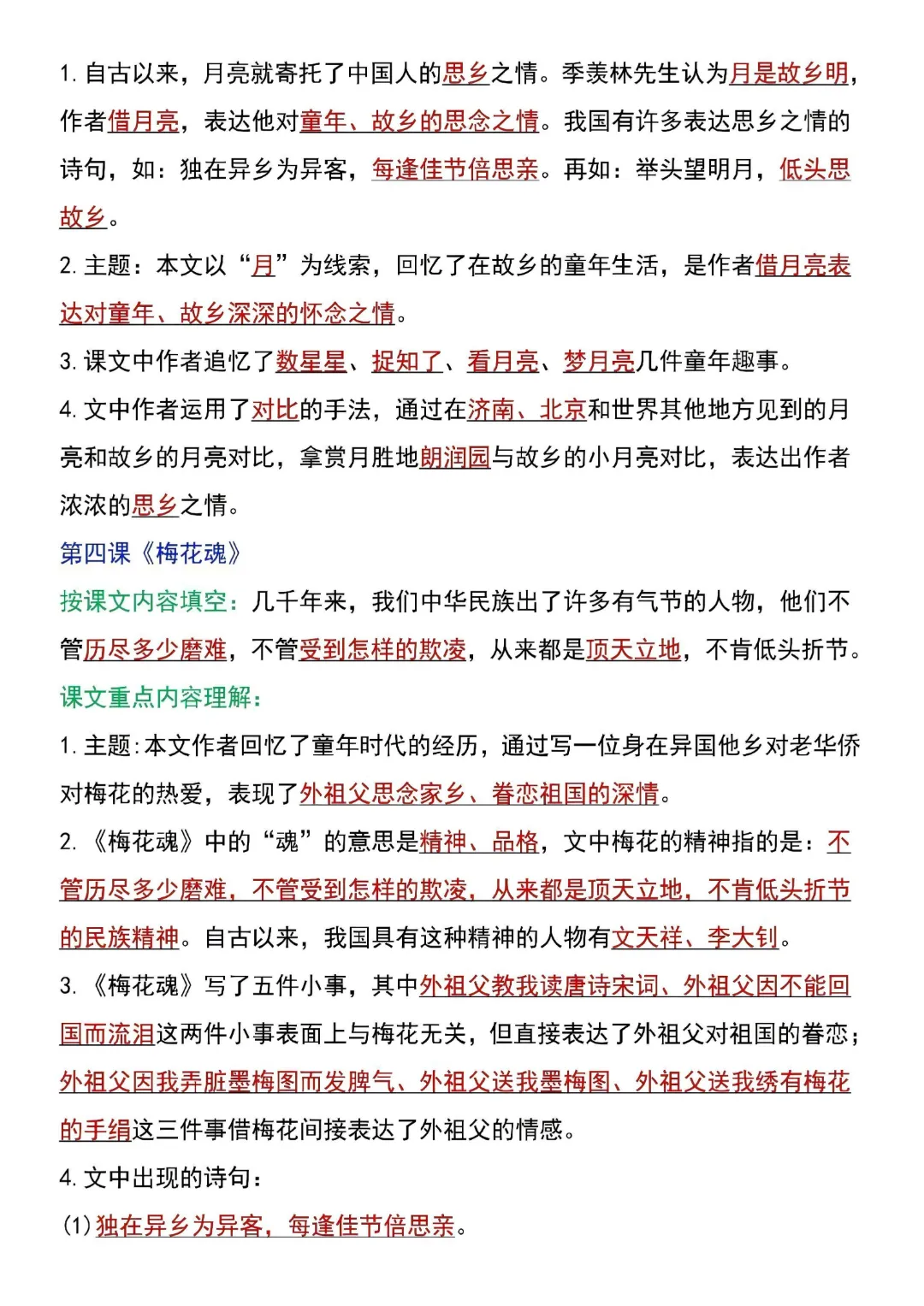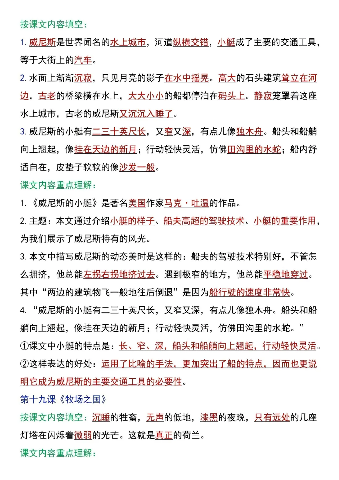 【五年级下册语文部编版】各课课文知识点归纳丨完整高清电子版可打印