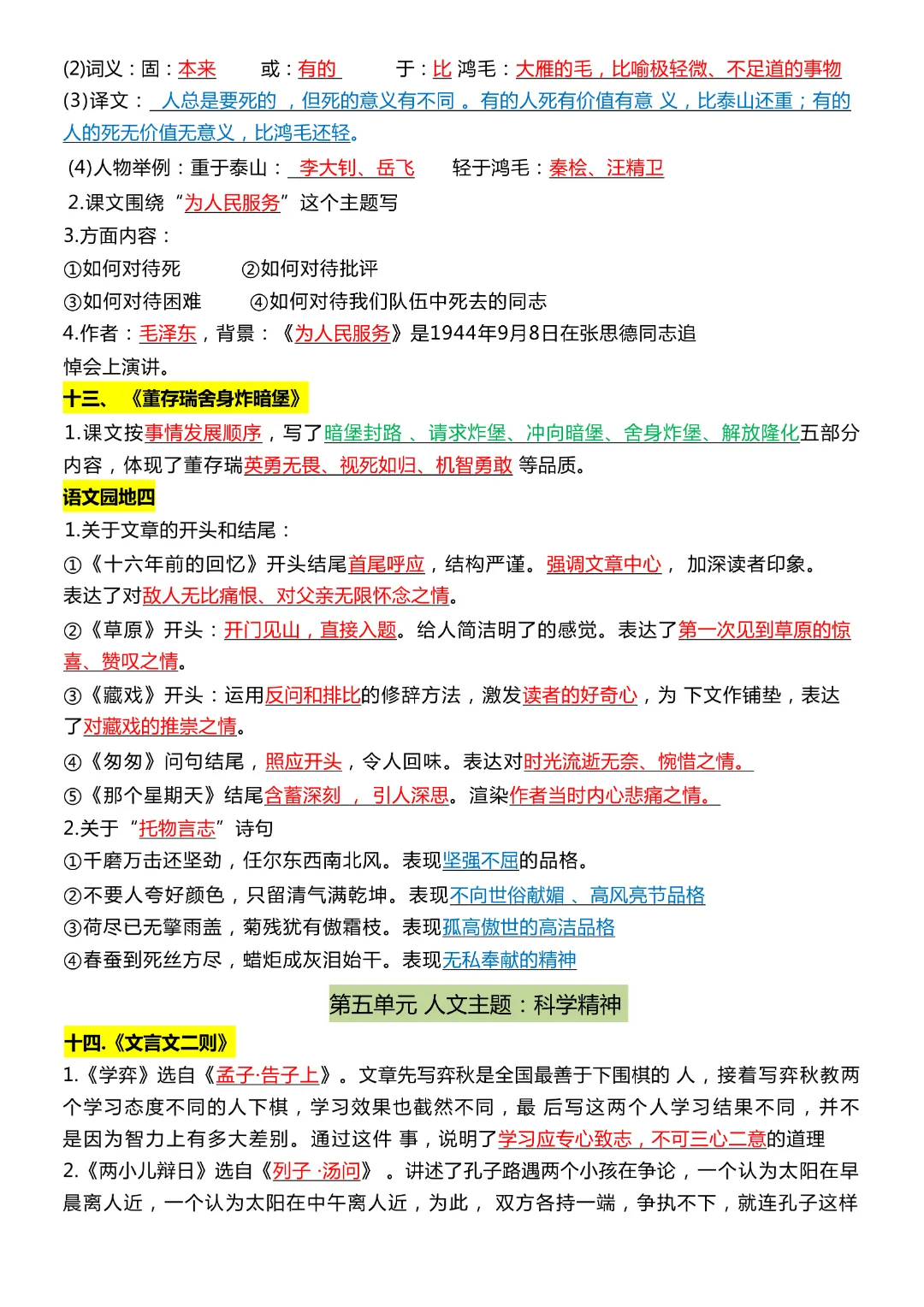今天给大家分享的是:【六年级下册语文部编版】第1-8单元重点知识总结丨完整高清电子版可打印