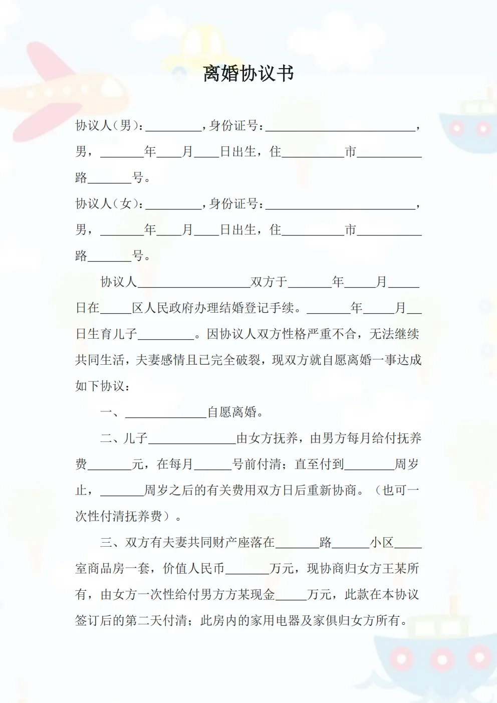 ⭕️离婚协议书范本模板合集