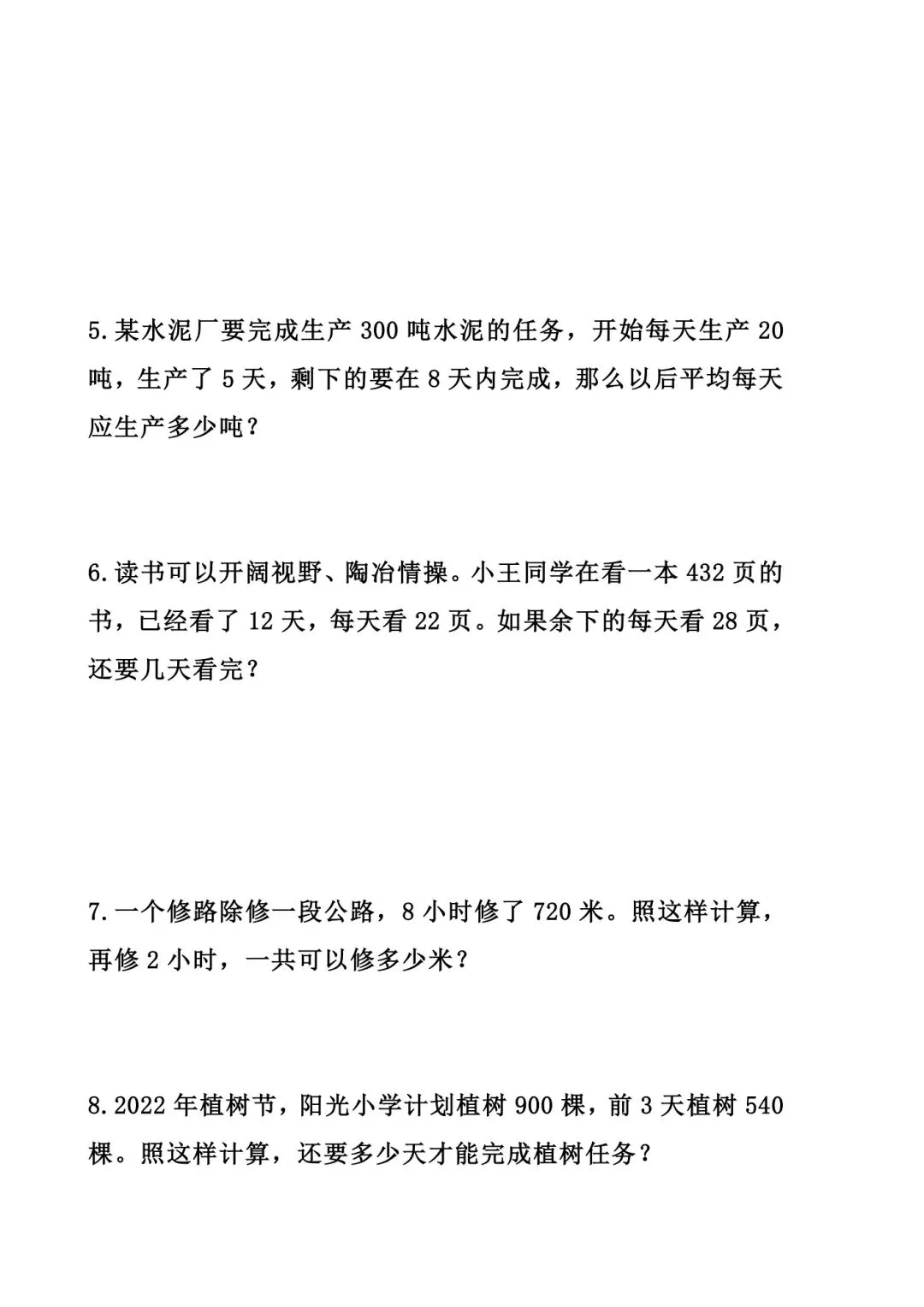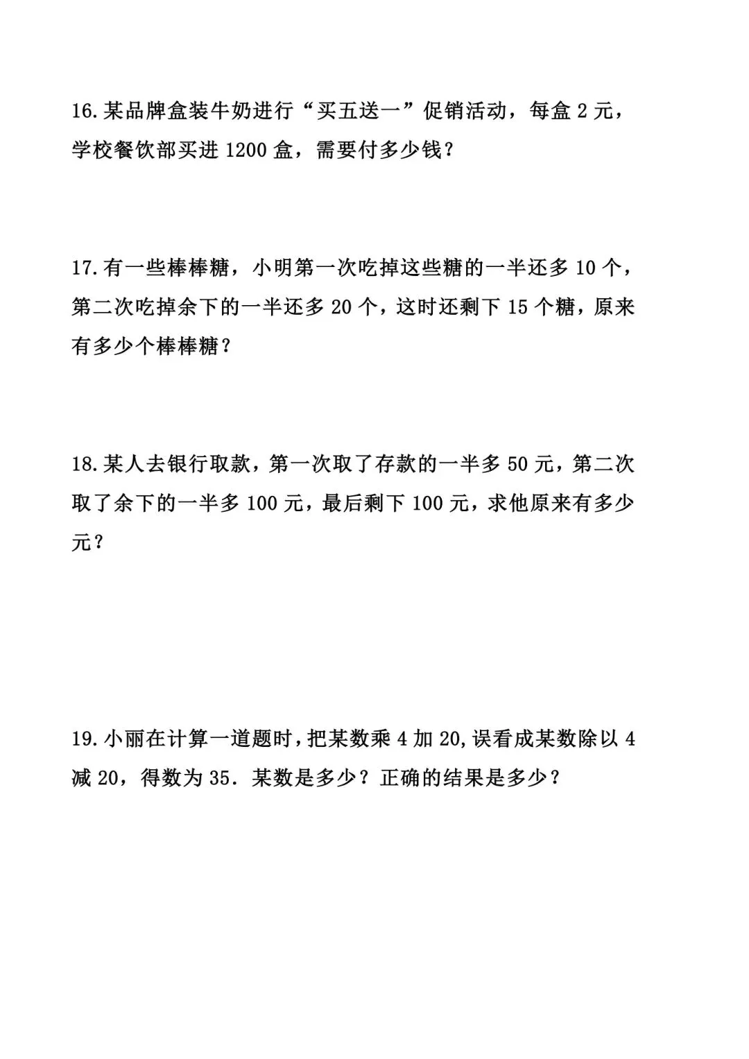 四年级下册通用版数学《必考专题|四则运算应用题专题训练》,可打印