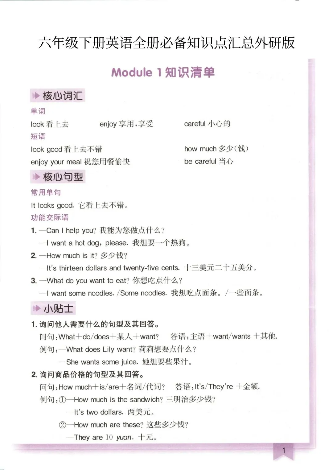 六年级(下)英语寒假预习知识点汇总