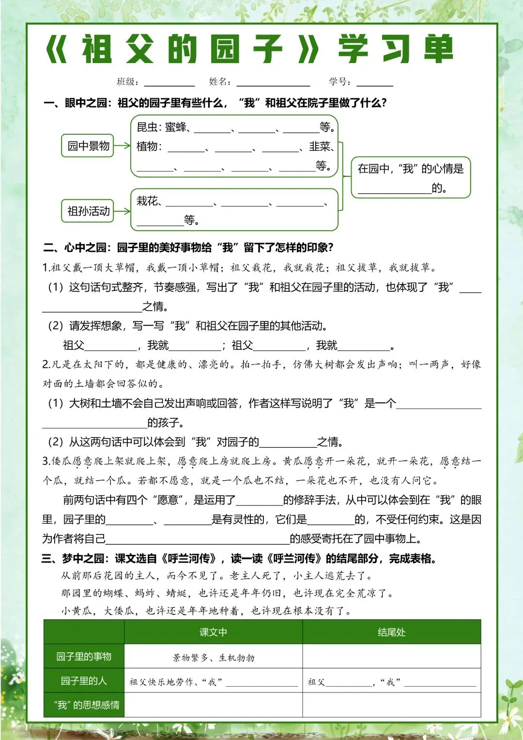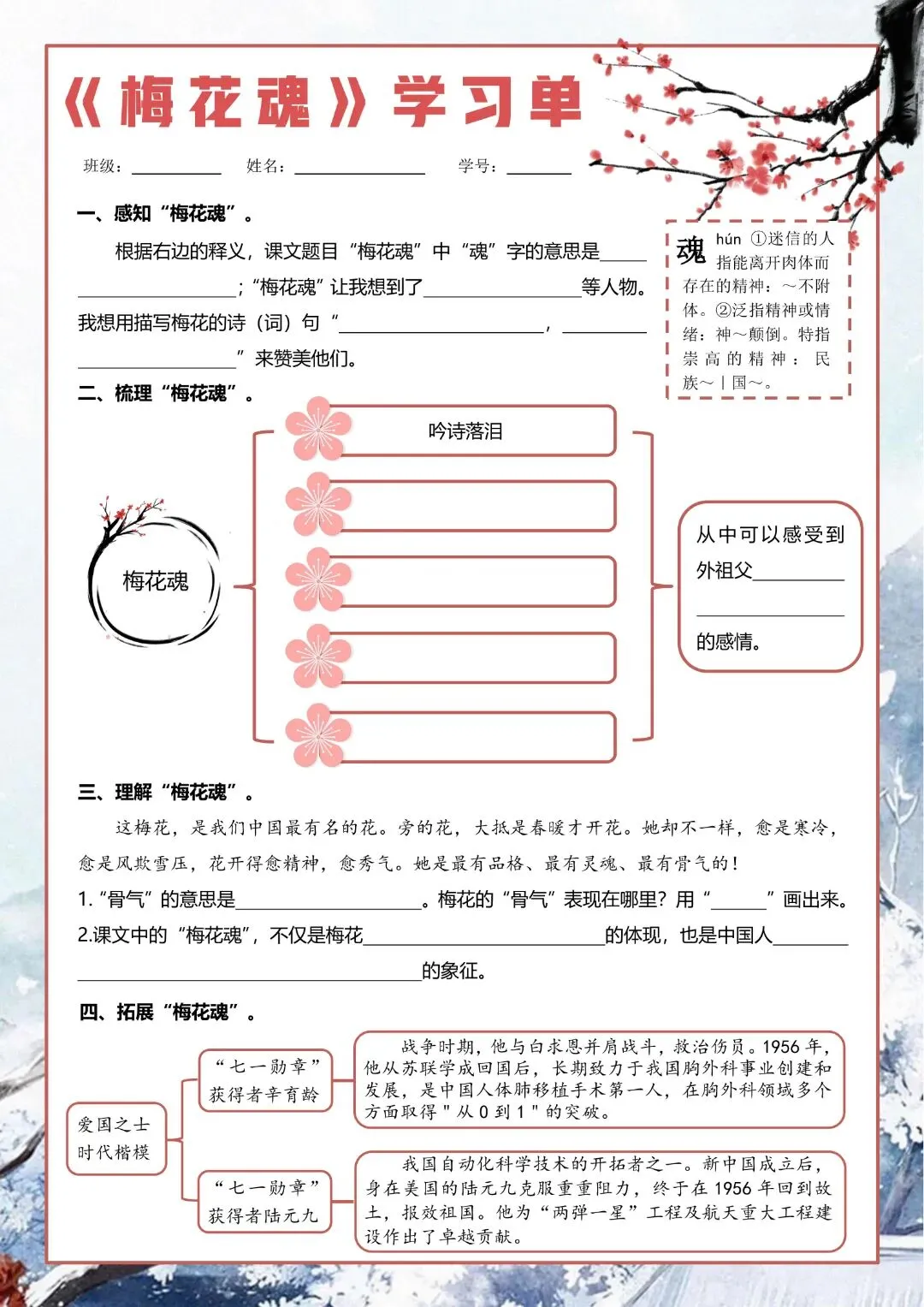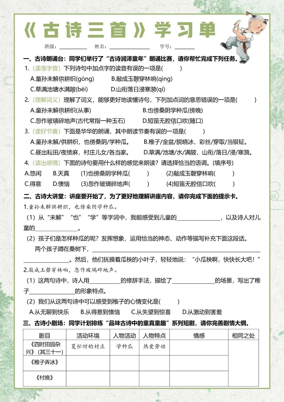 26春五年级下册语文《每课学习单》|高清电子版可打印