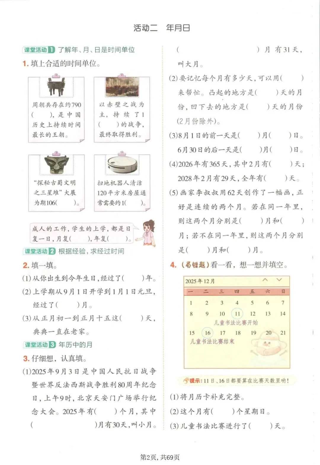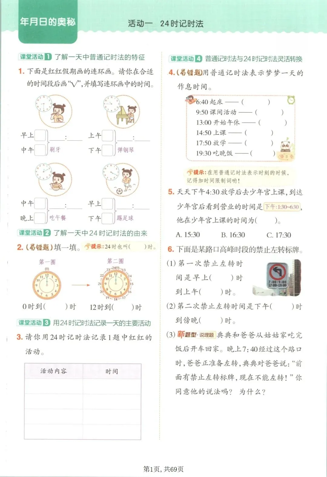 【免费下载】三年级(下)数学 一课一练1-4单元《冀教版》,PDF电子版,共69页,可打印