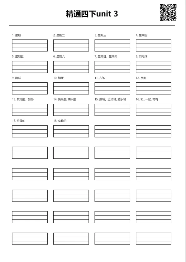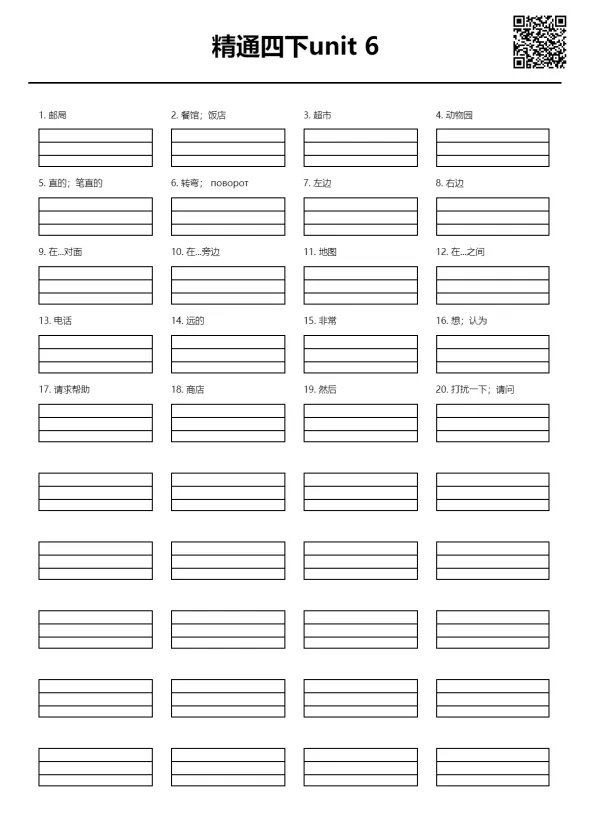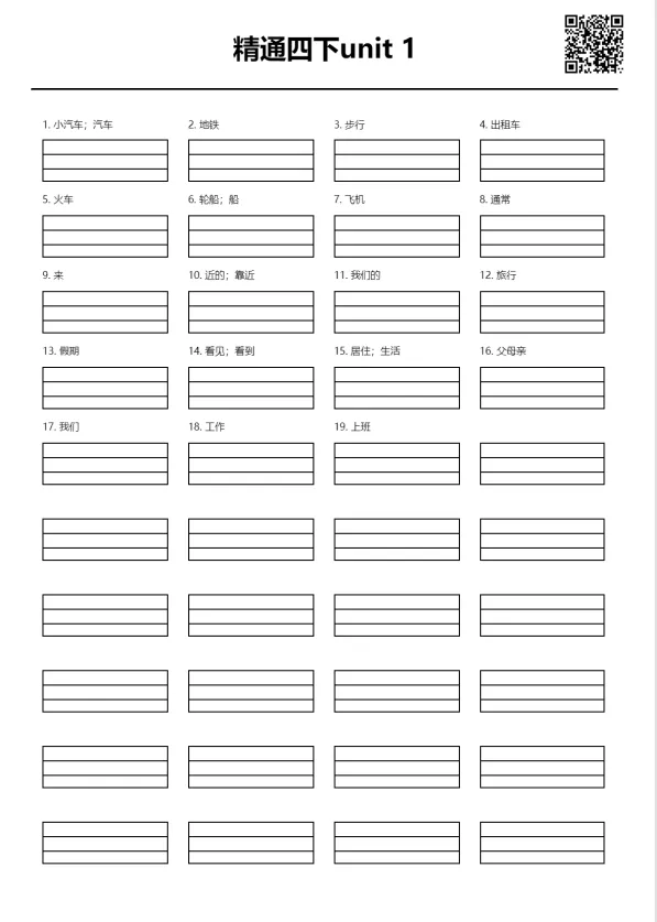 四年级英语下册(新人教精通版)Unit1-Unit6全册单词听写纸(附音频,可打印)