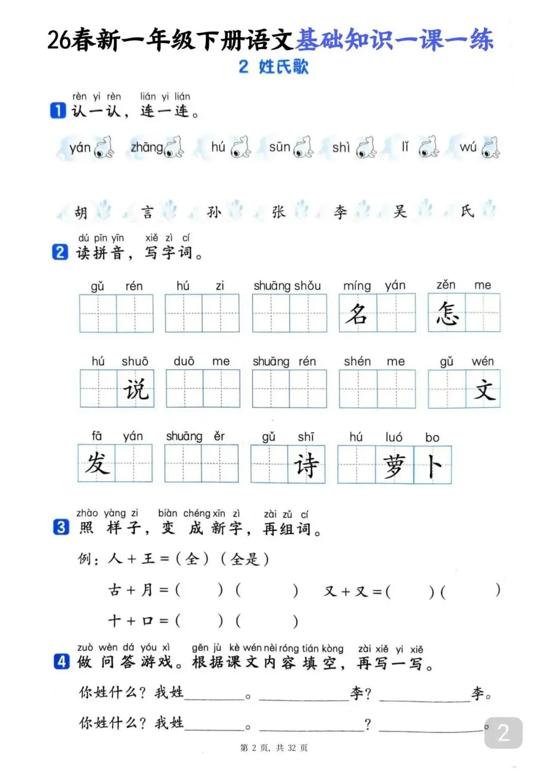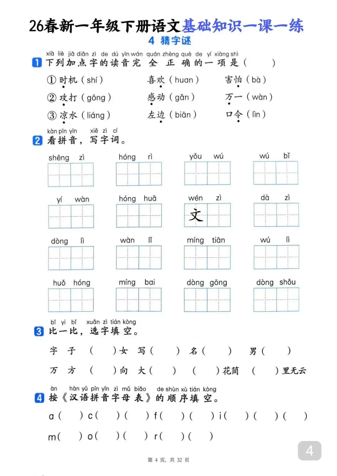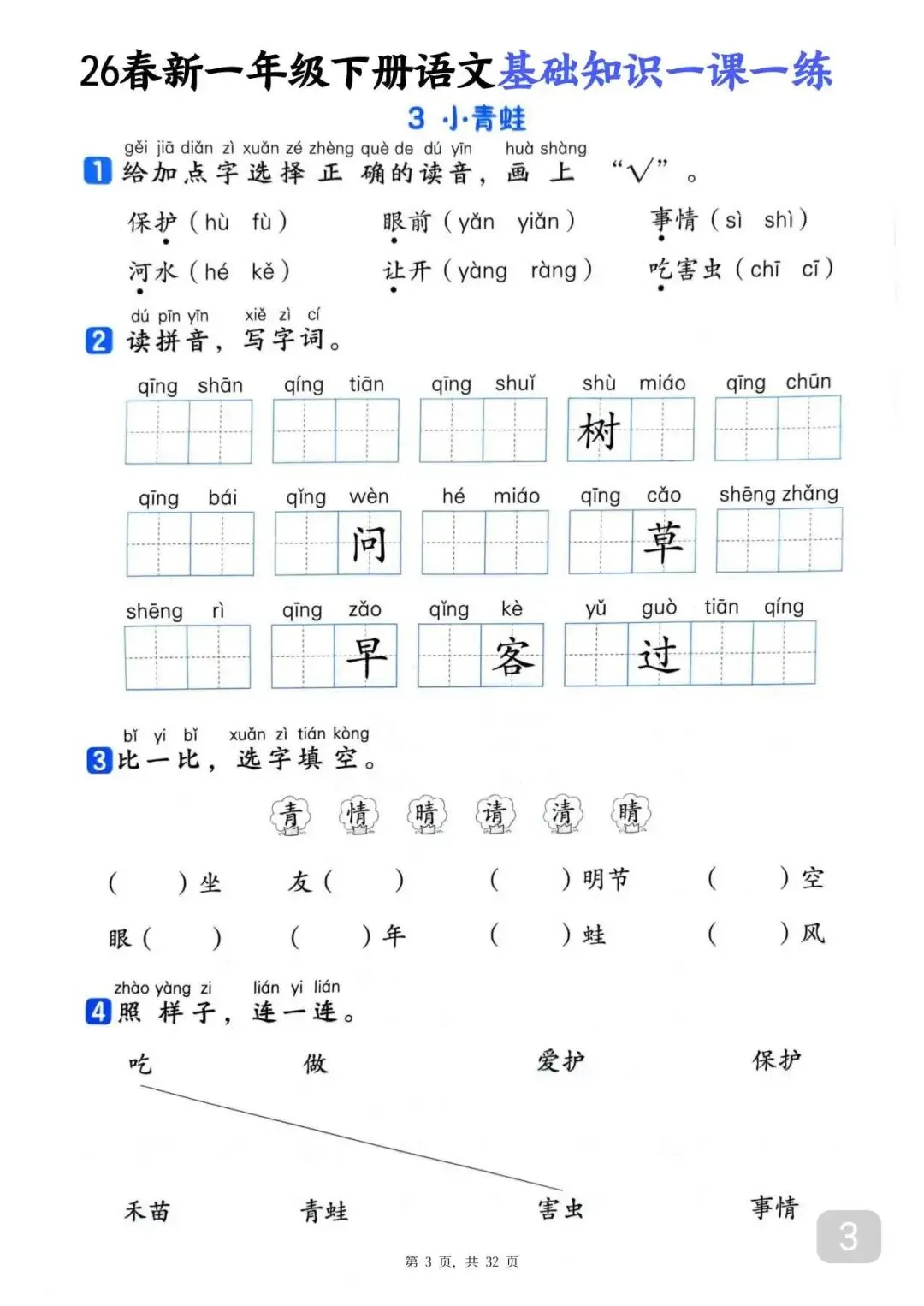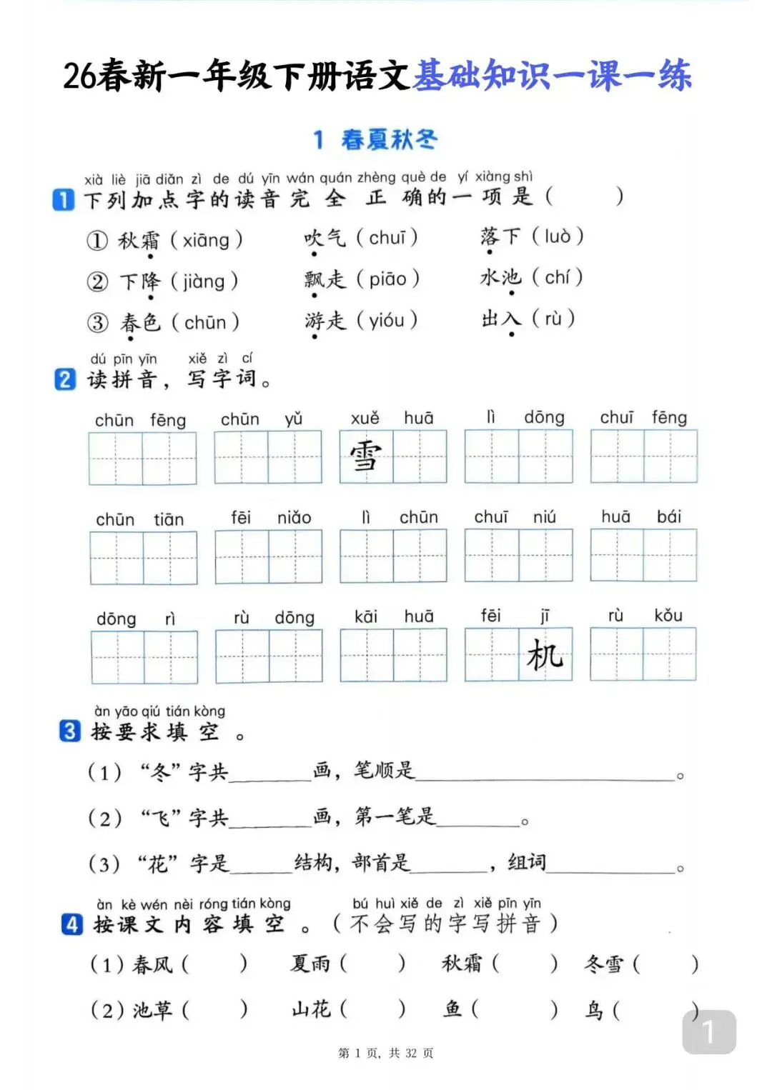 26春一年级下册语文基础知识一课一练(电子版可打印)