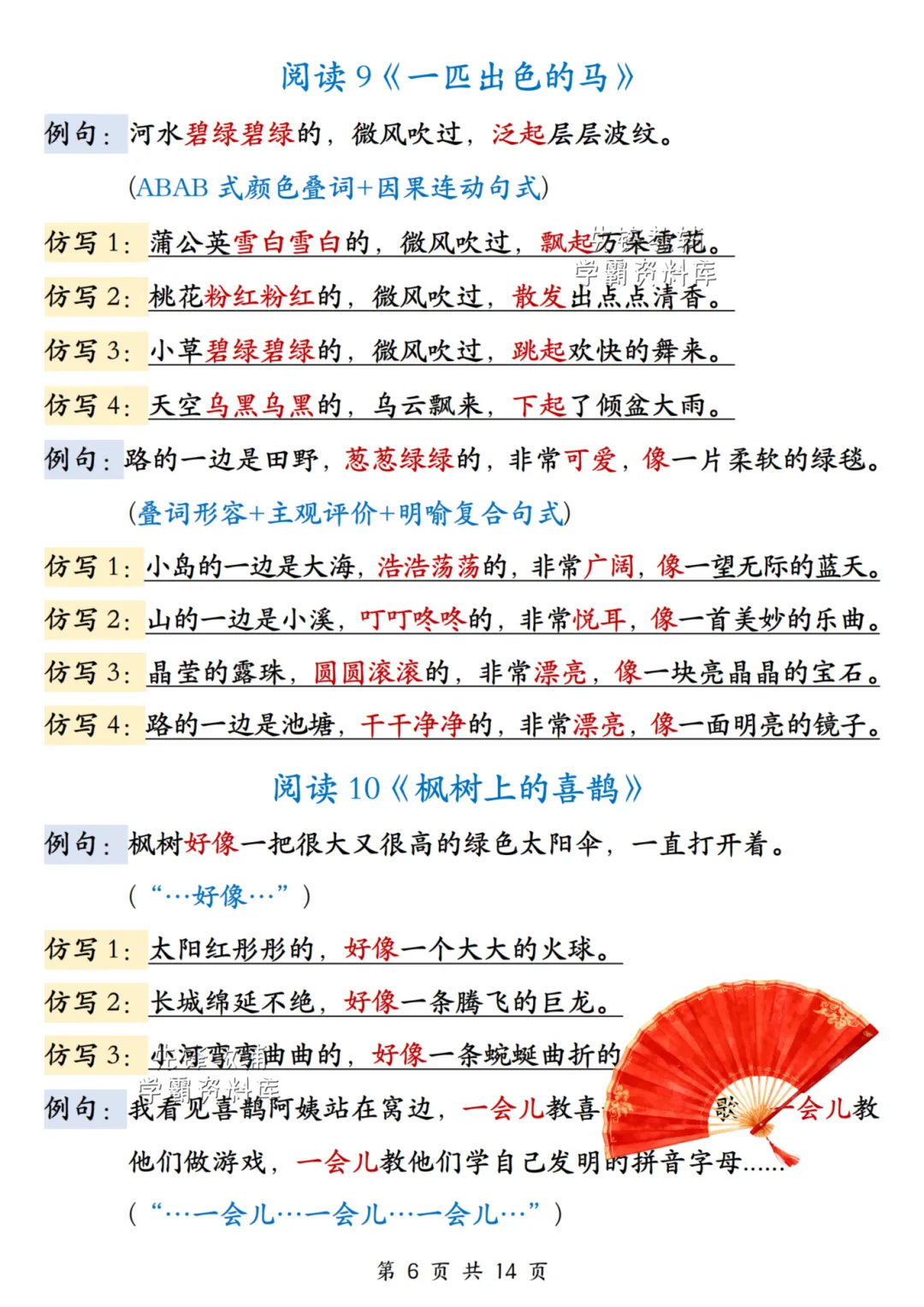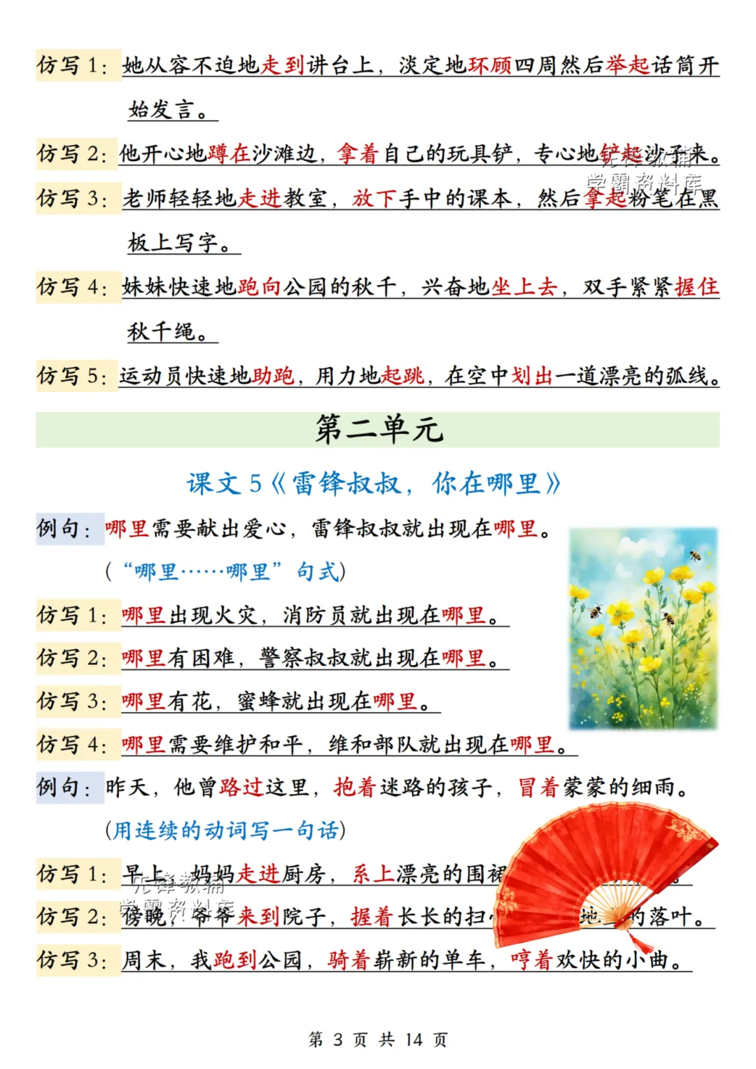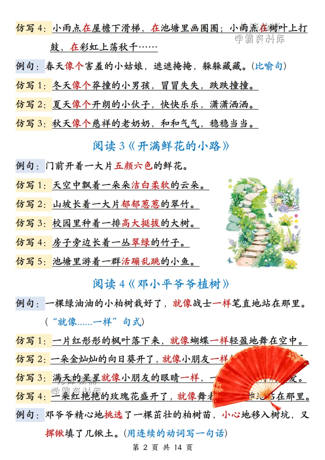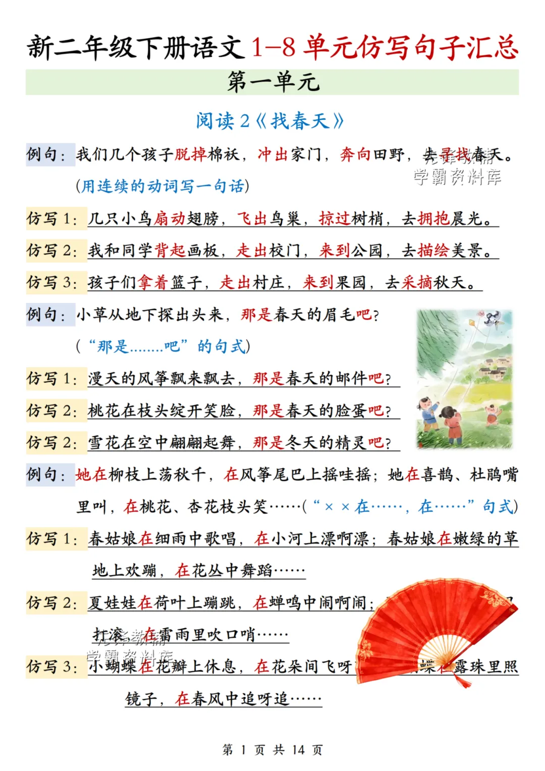 26春《二年级下册语文课内句子仿写》电子PDF文档共14页,公益分享,即拿即用,可直接打印。