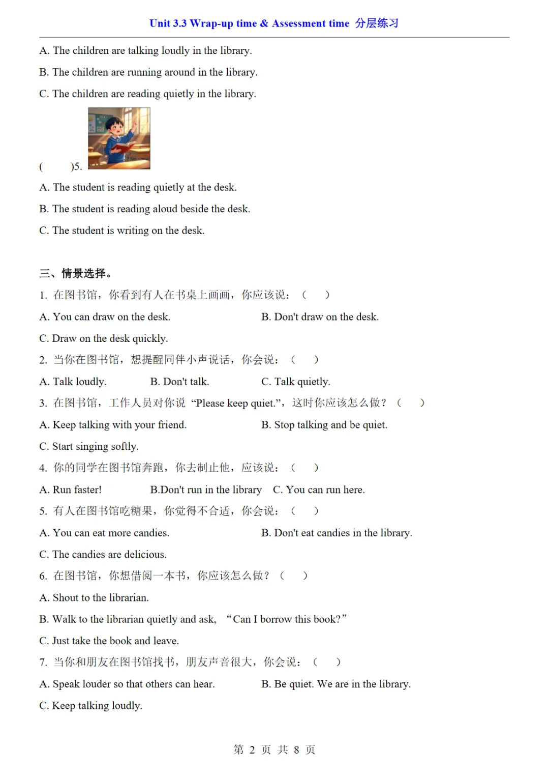 【免费下载】三年级(下)英语 Unit 3.3 Wrap-up time & Assessment time分层练习《译林版》,PDF电子版,共8页,可打印