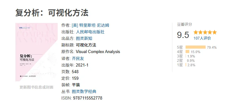 豆瓣 9.6 分、重印十余次的经典,25 周年纪念版更新增大师序言与注解。翻开它,让抽象的复分析变得可看、可感、可懂,解锁几何思维的无限可能,在数学世界里收获通透的喜悦。