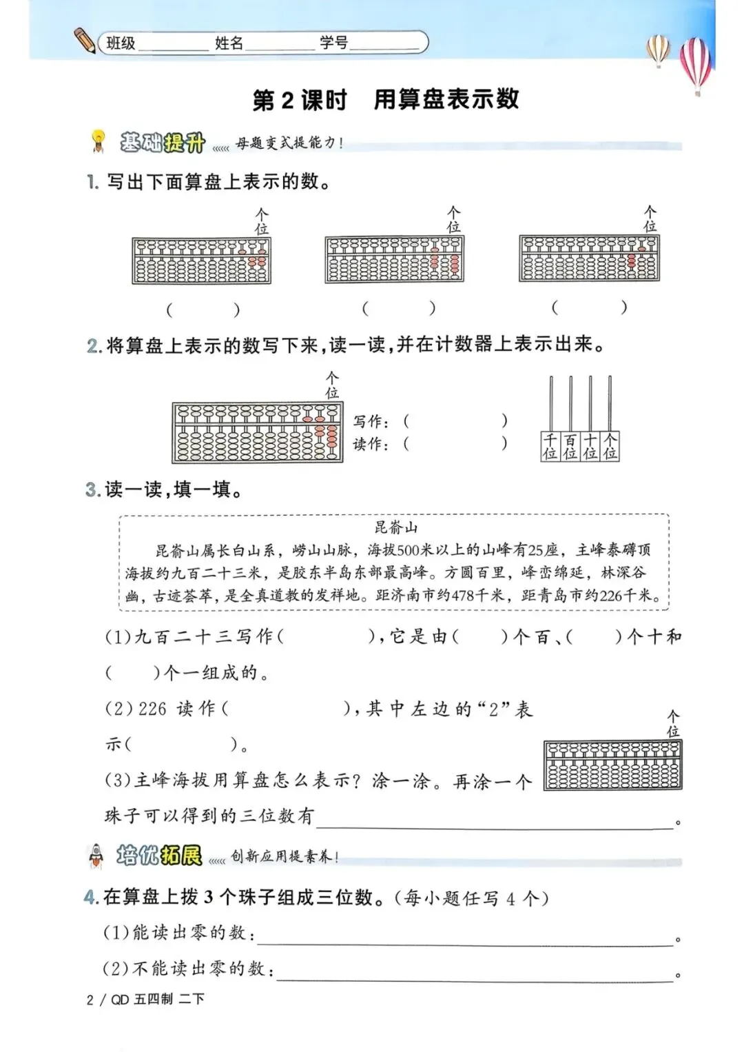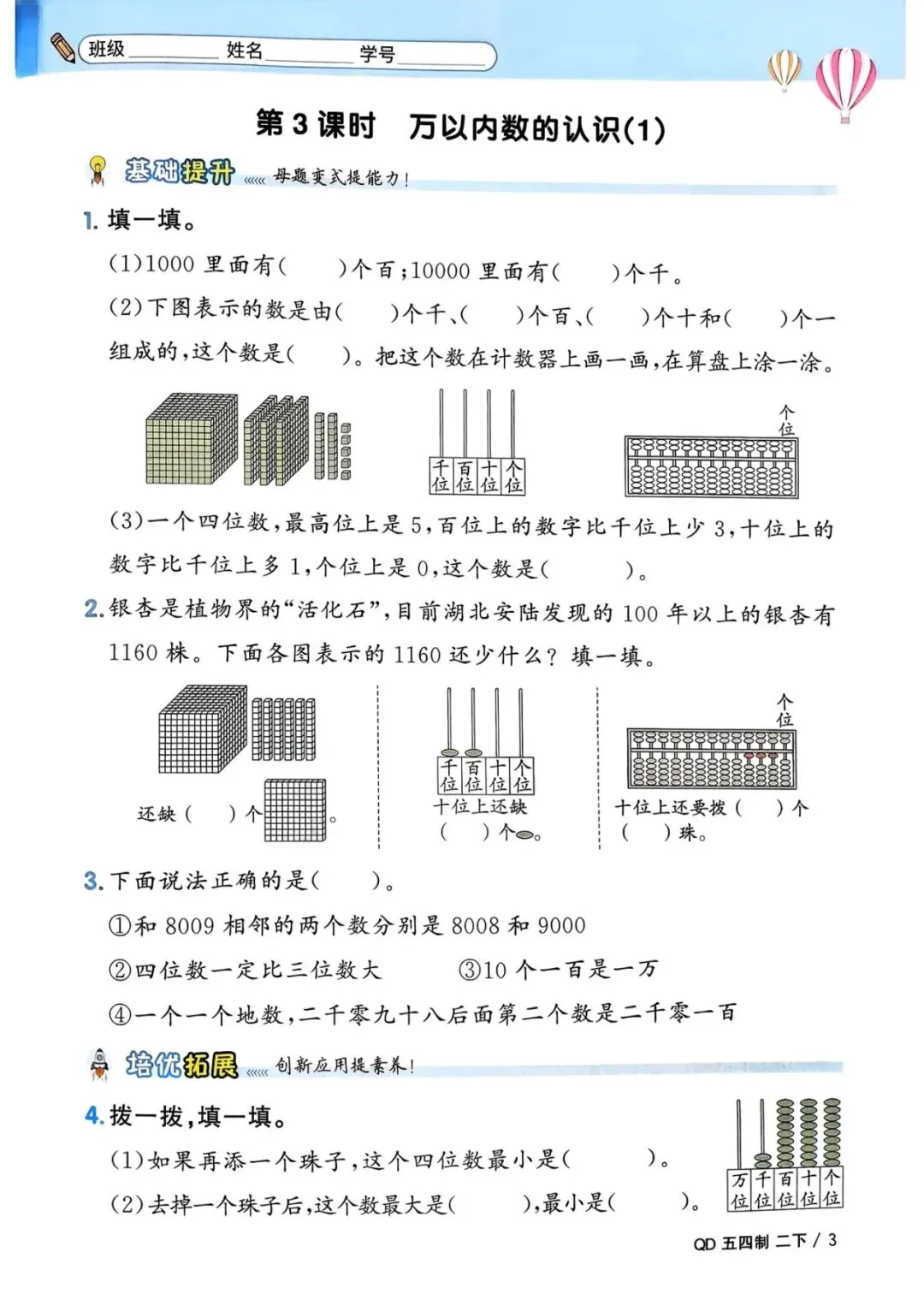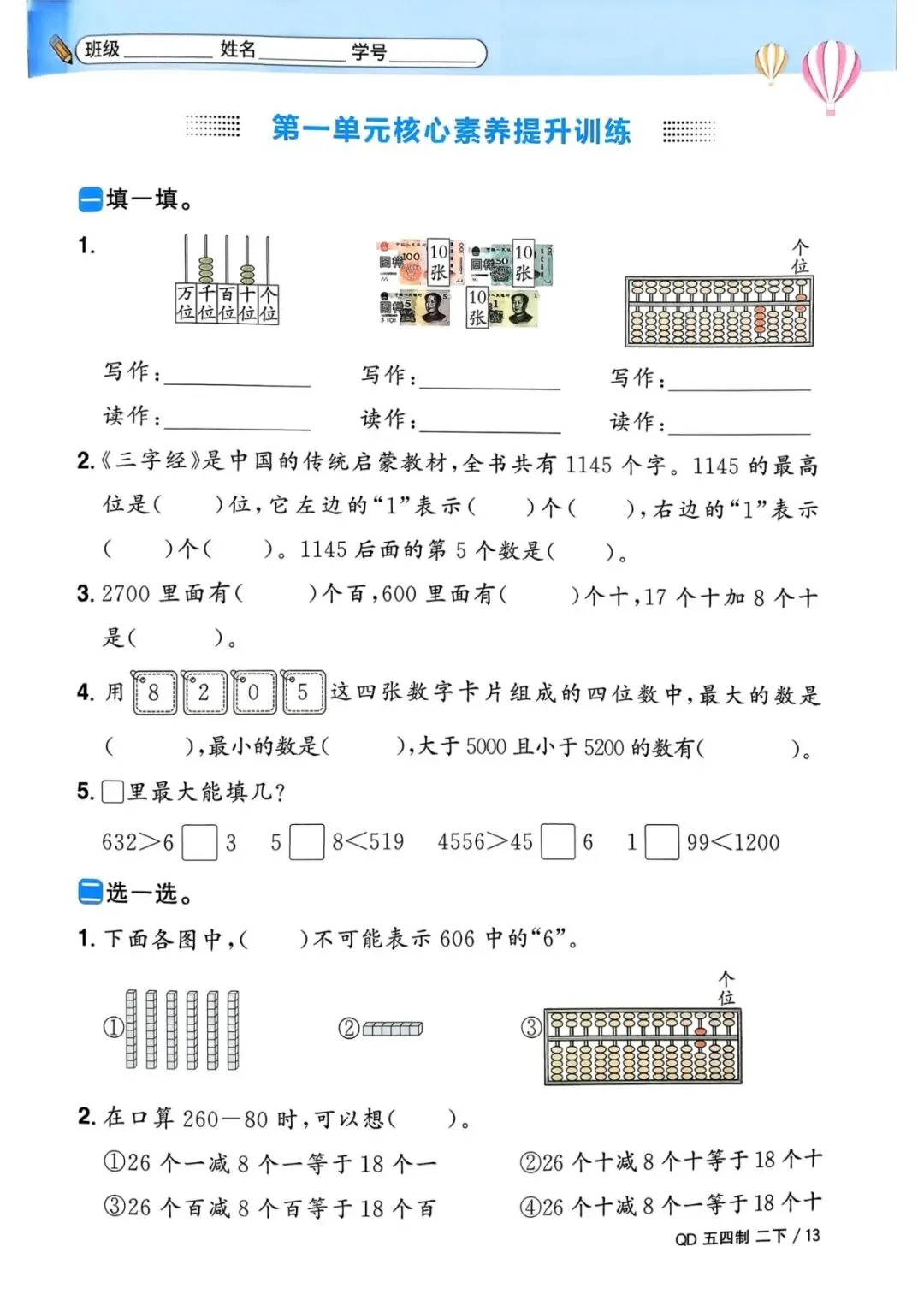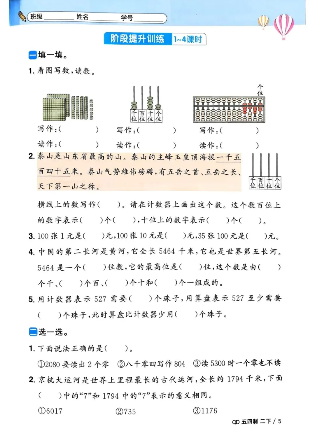 🌟二年级下册青岛54版数学,1-3单元一课一练,电子版可下载可打印,需要的朋友抓紧保存一份,给孩子用起来吧💪!