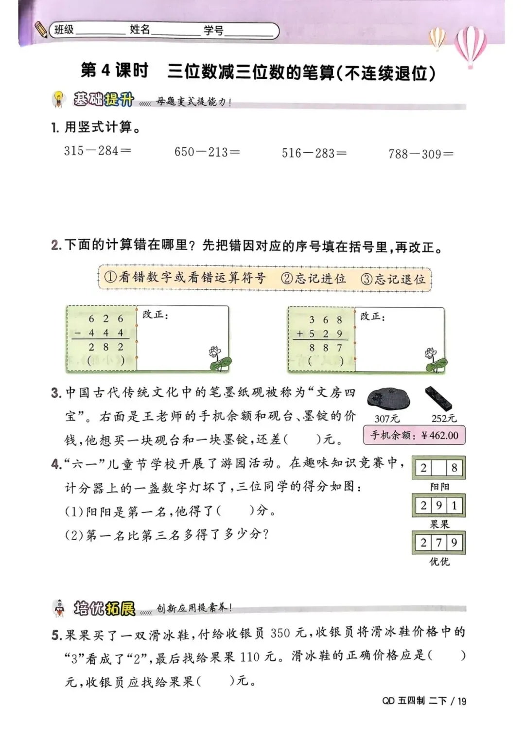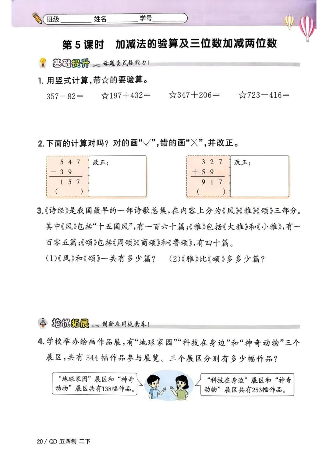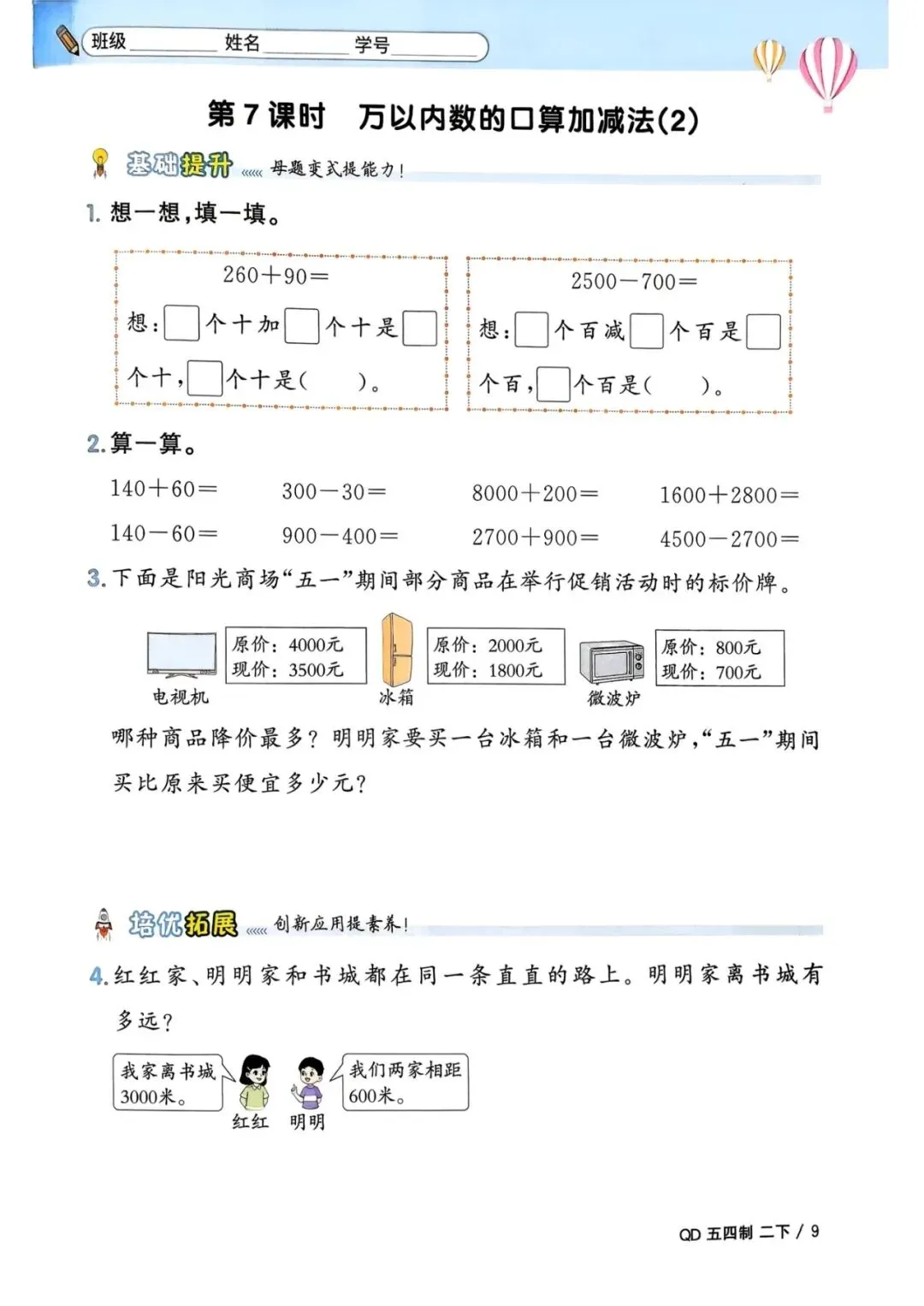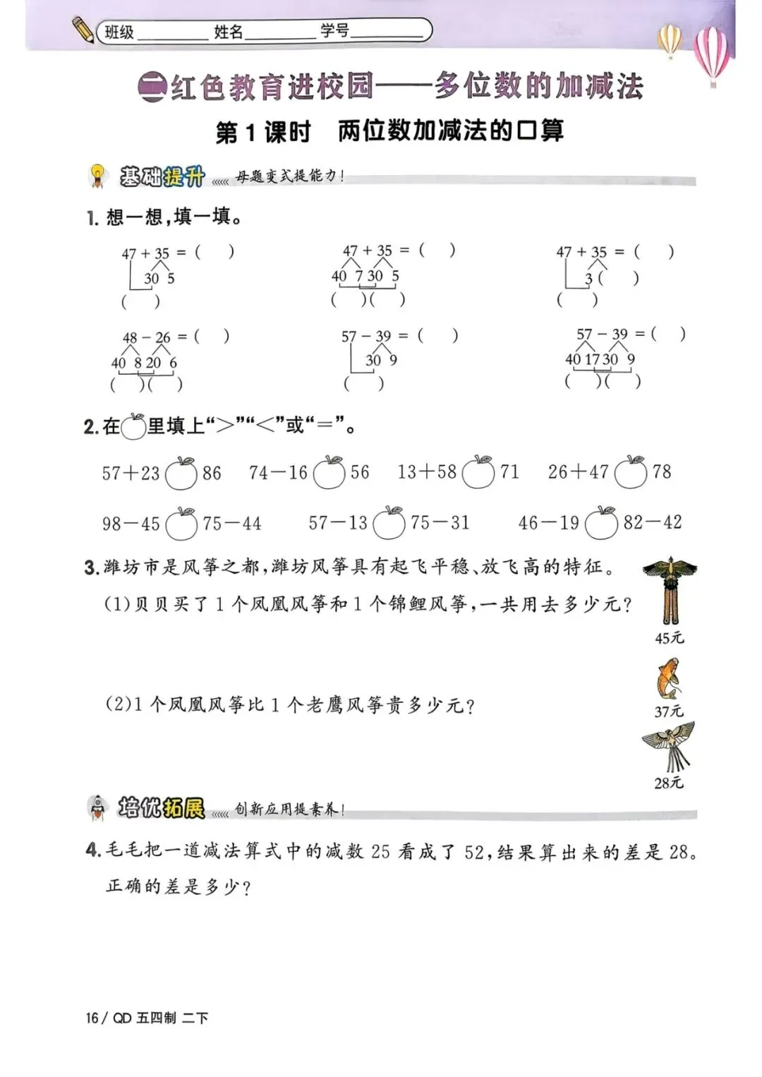 🌟二年级下册青岛54版数学,1-3单元一课一练,电子版可下载可打印,需要的朋友抓紧保存一份,给孩子用起来吧💪!