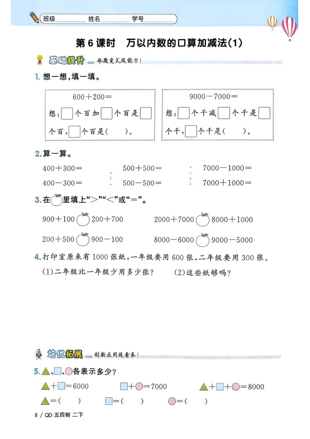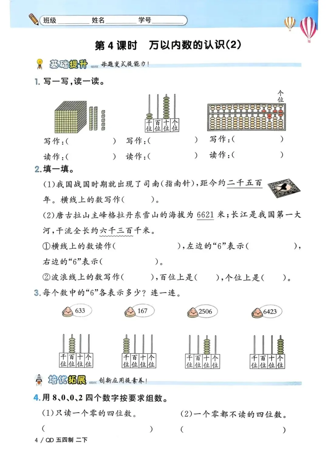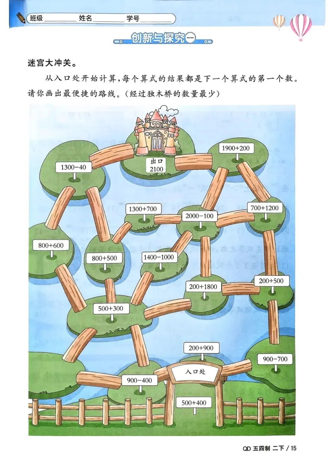 二年级下册青岛54版数学《一课一练》,电子版可打印