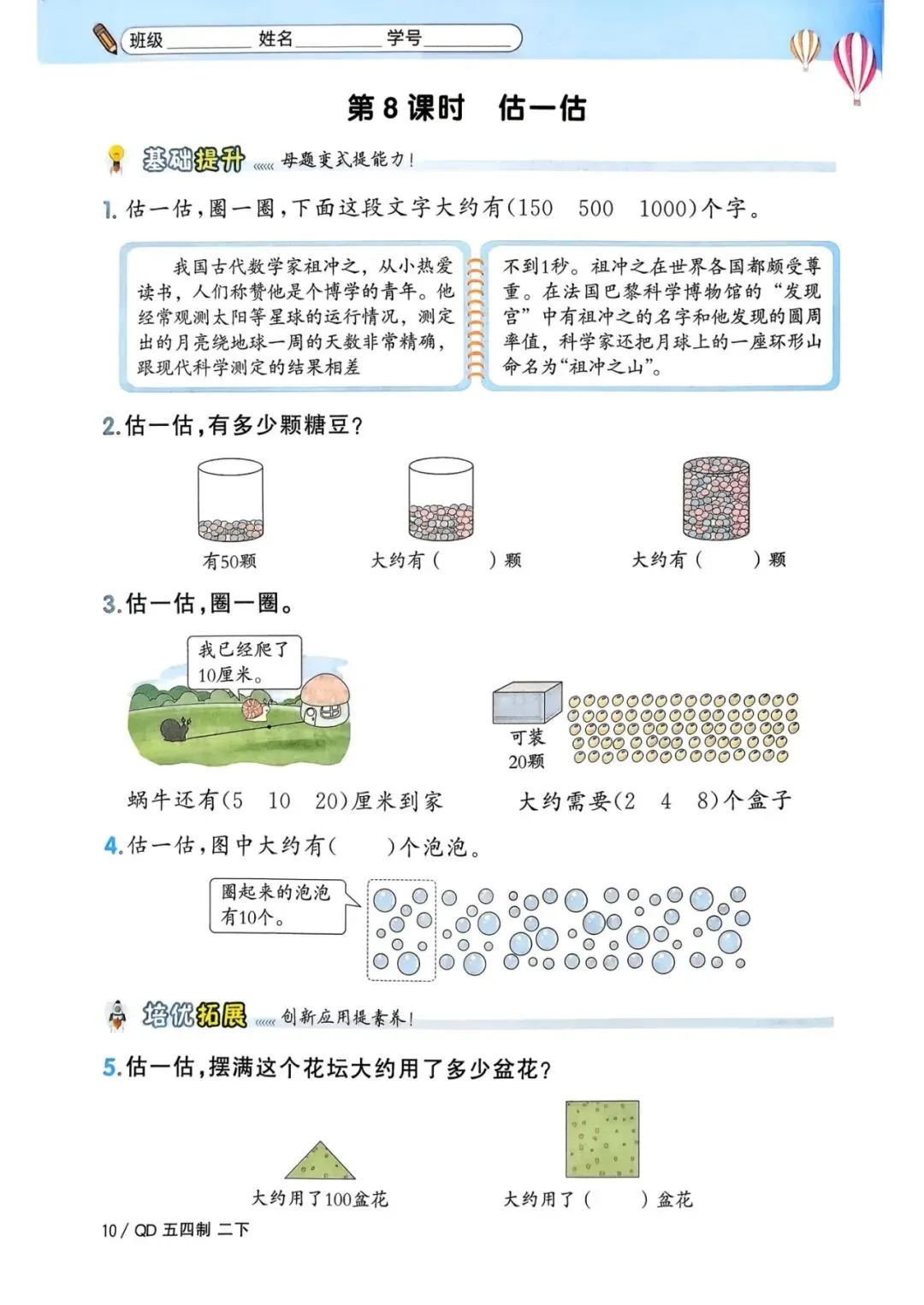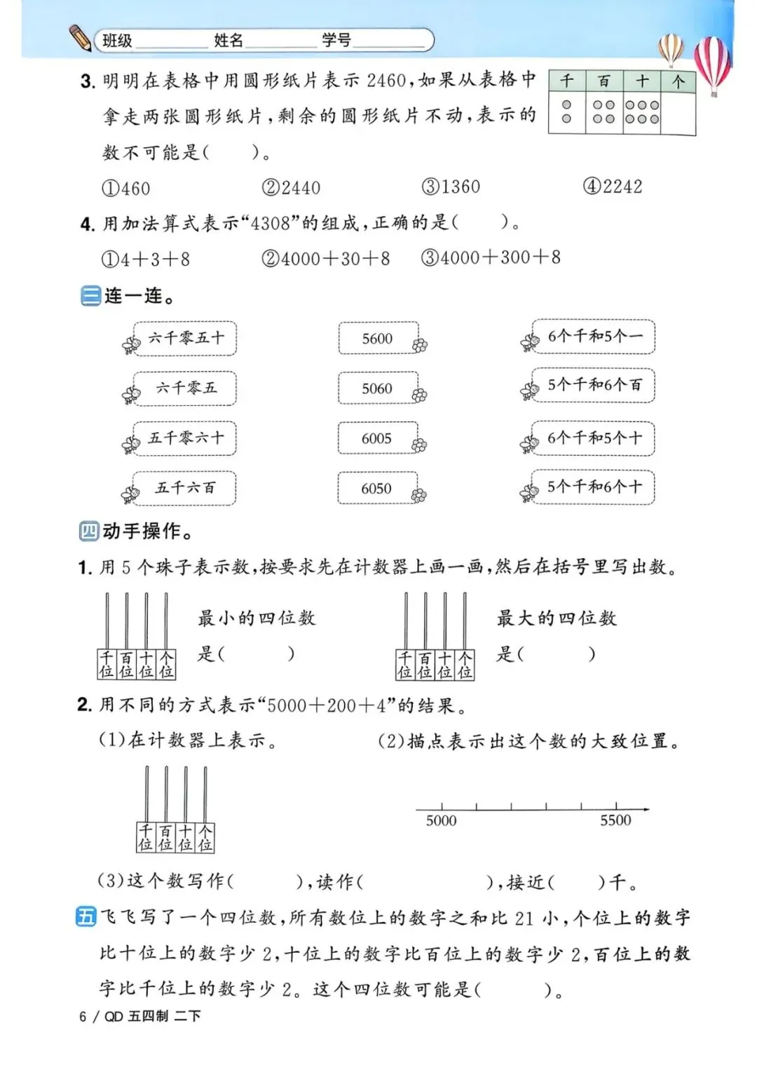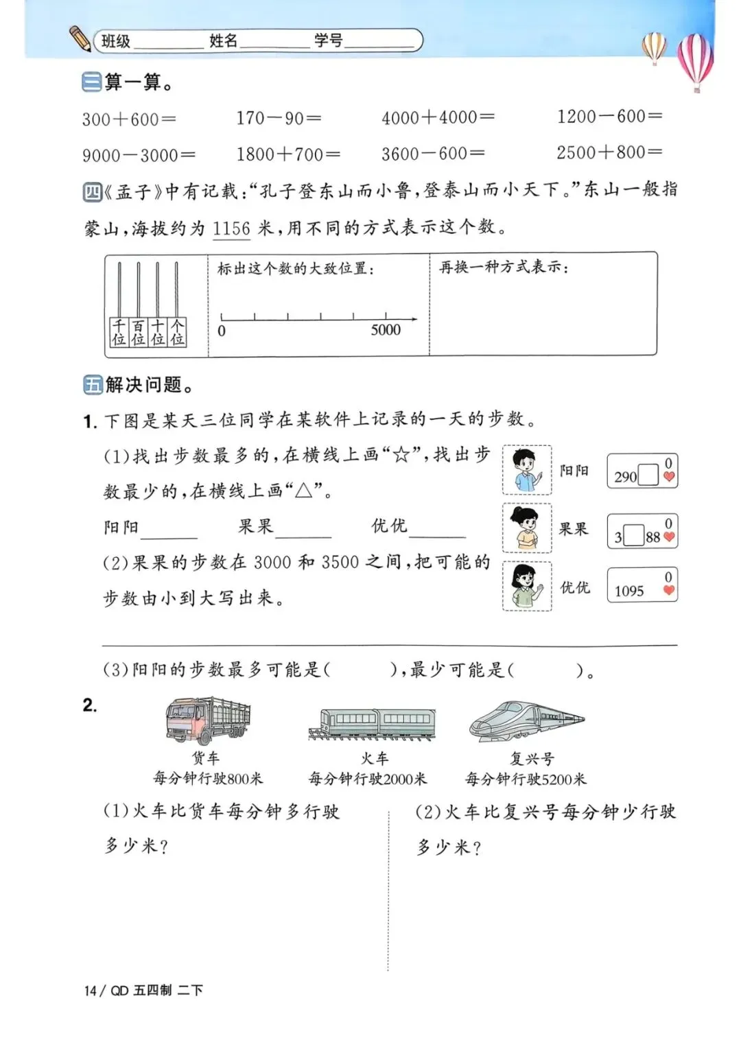 二年级下册青岛54版数学《一课一练》,电子版可打印
