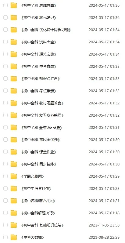 初中全科目《预习复习资料》整理汇总(网盘打包下载)7-9年级/语文/数学/英语/物理/化学/地理/生物/历史/道法 202602
