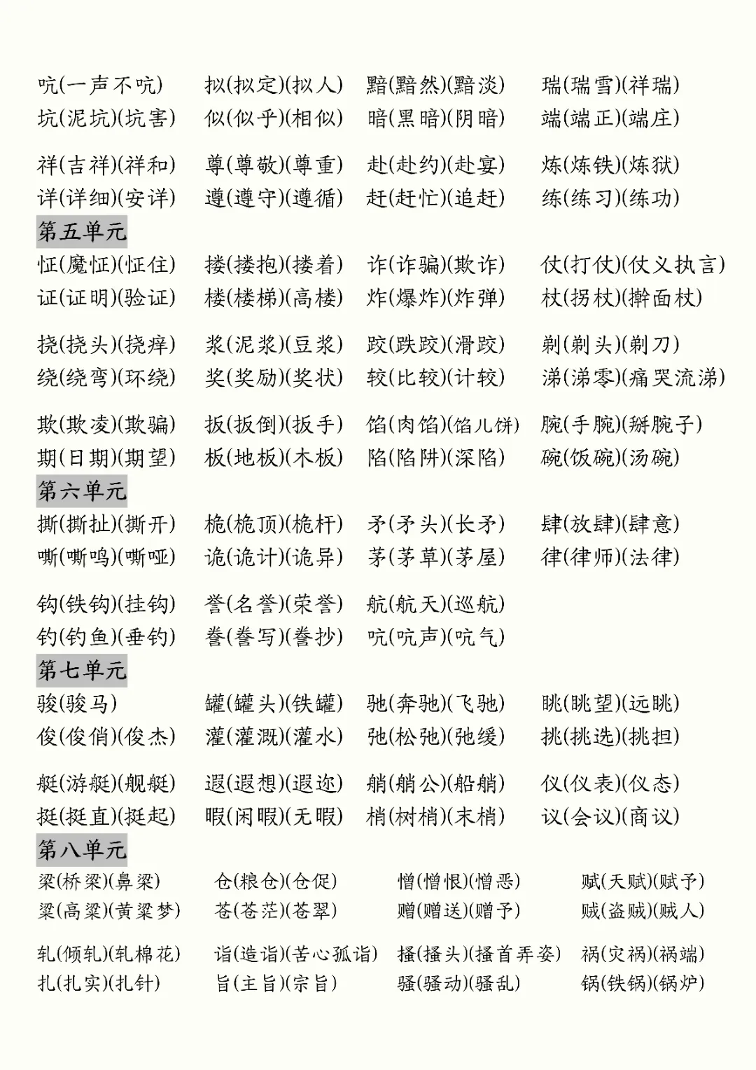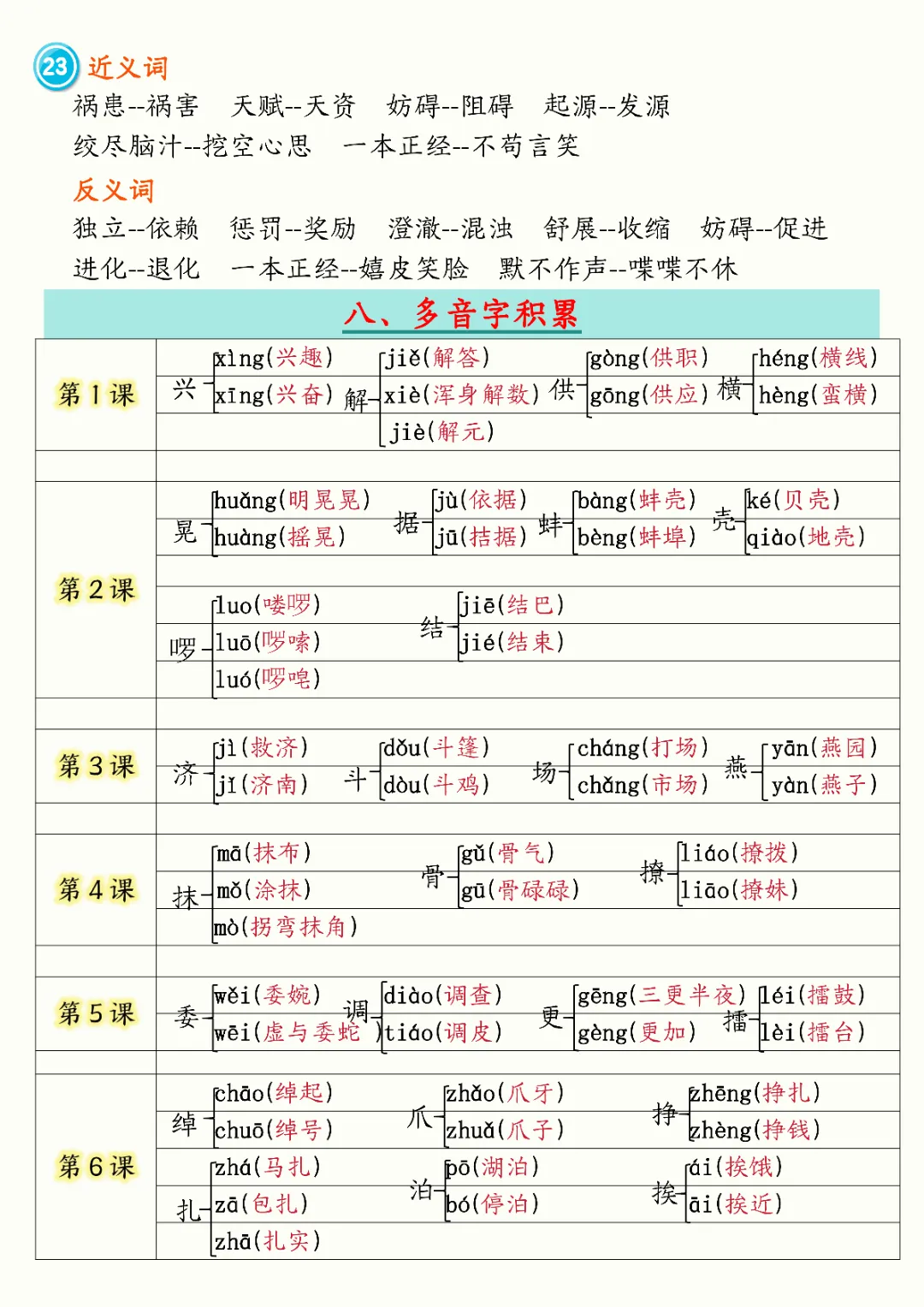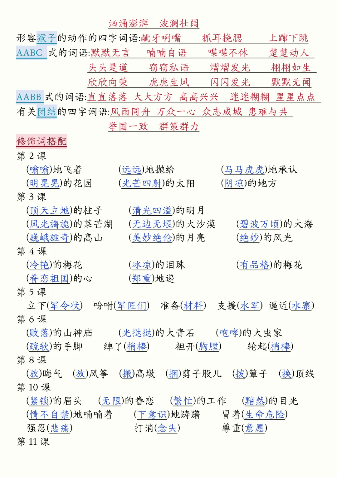 2026年五年级下册语文必背知识汇总(电子版可打印)