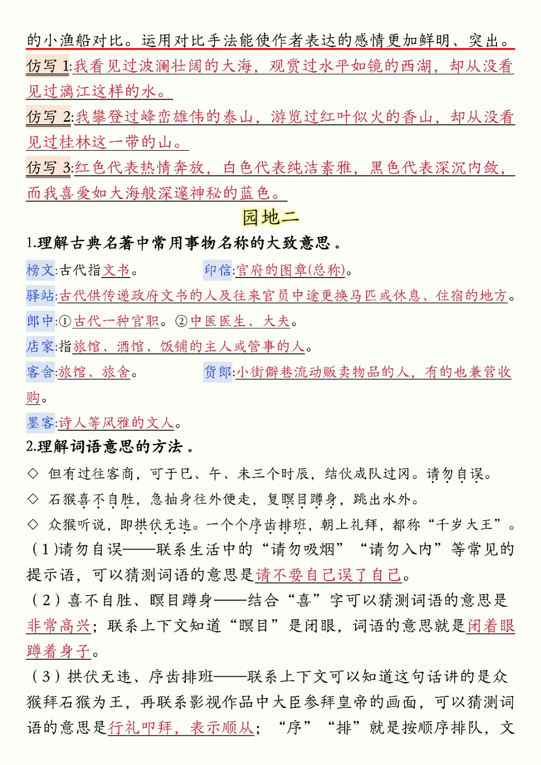 2026年五年级下册语文必背知识汇总|电子版可打印
