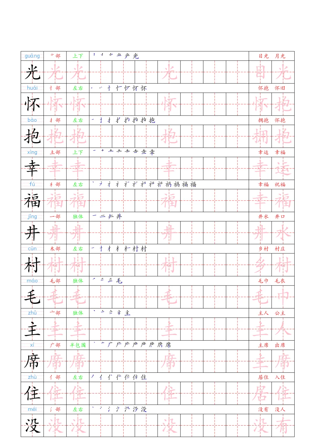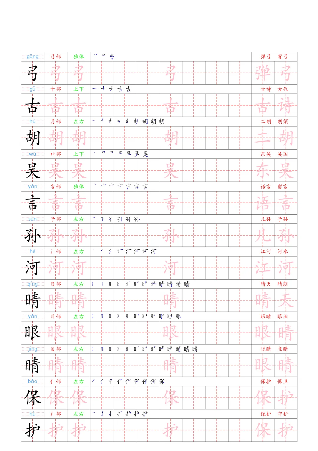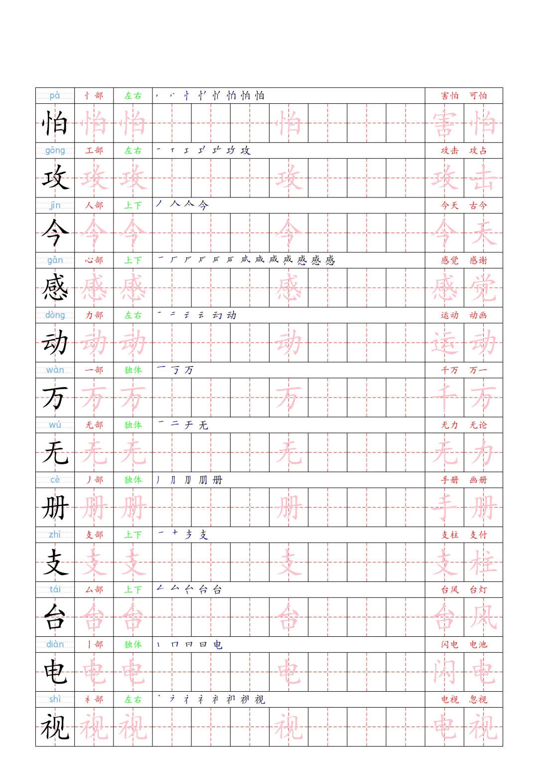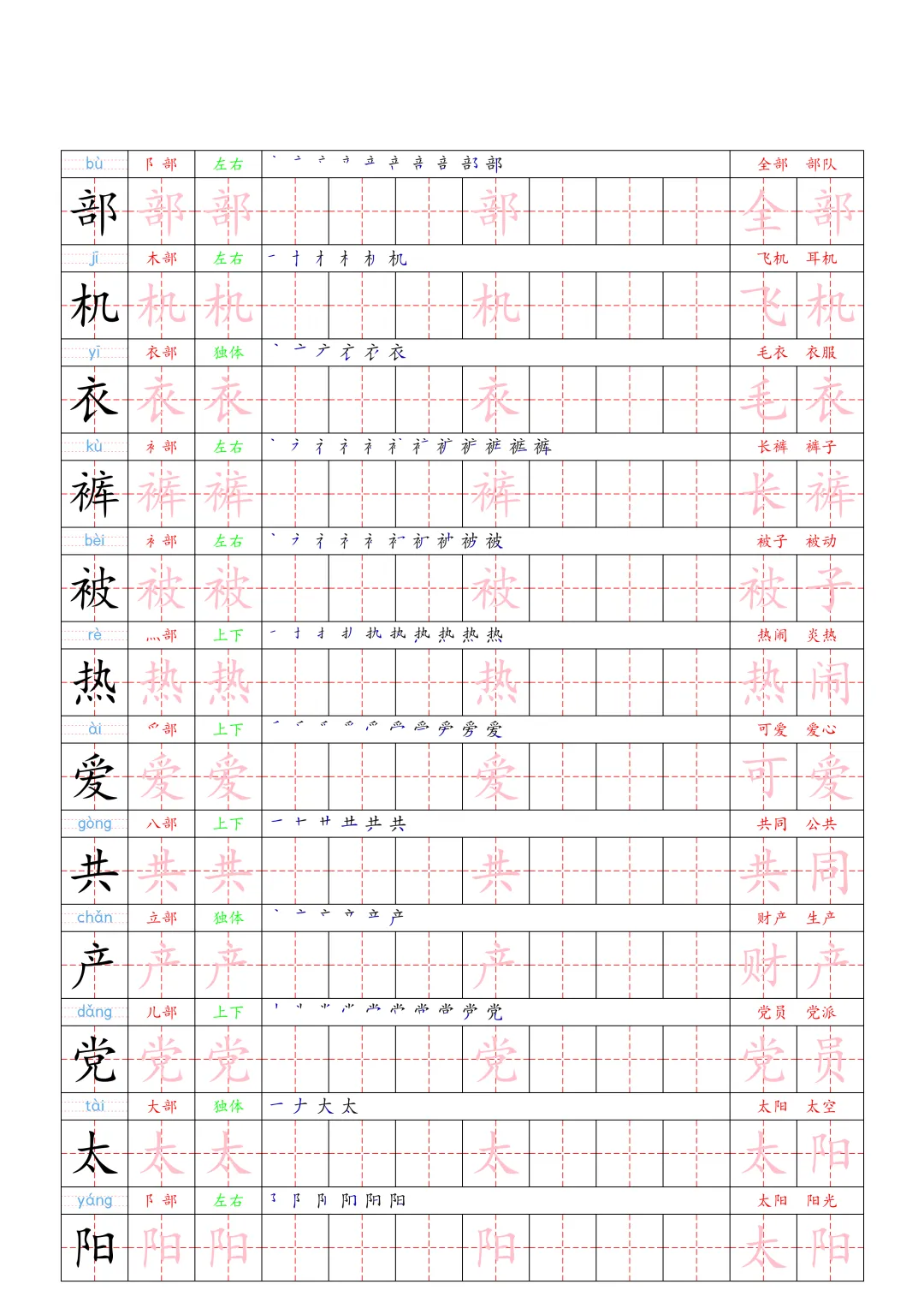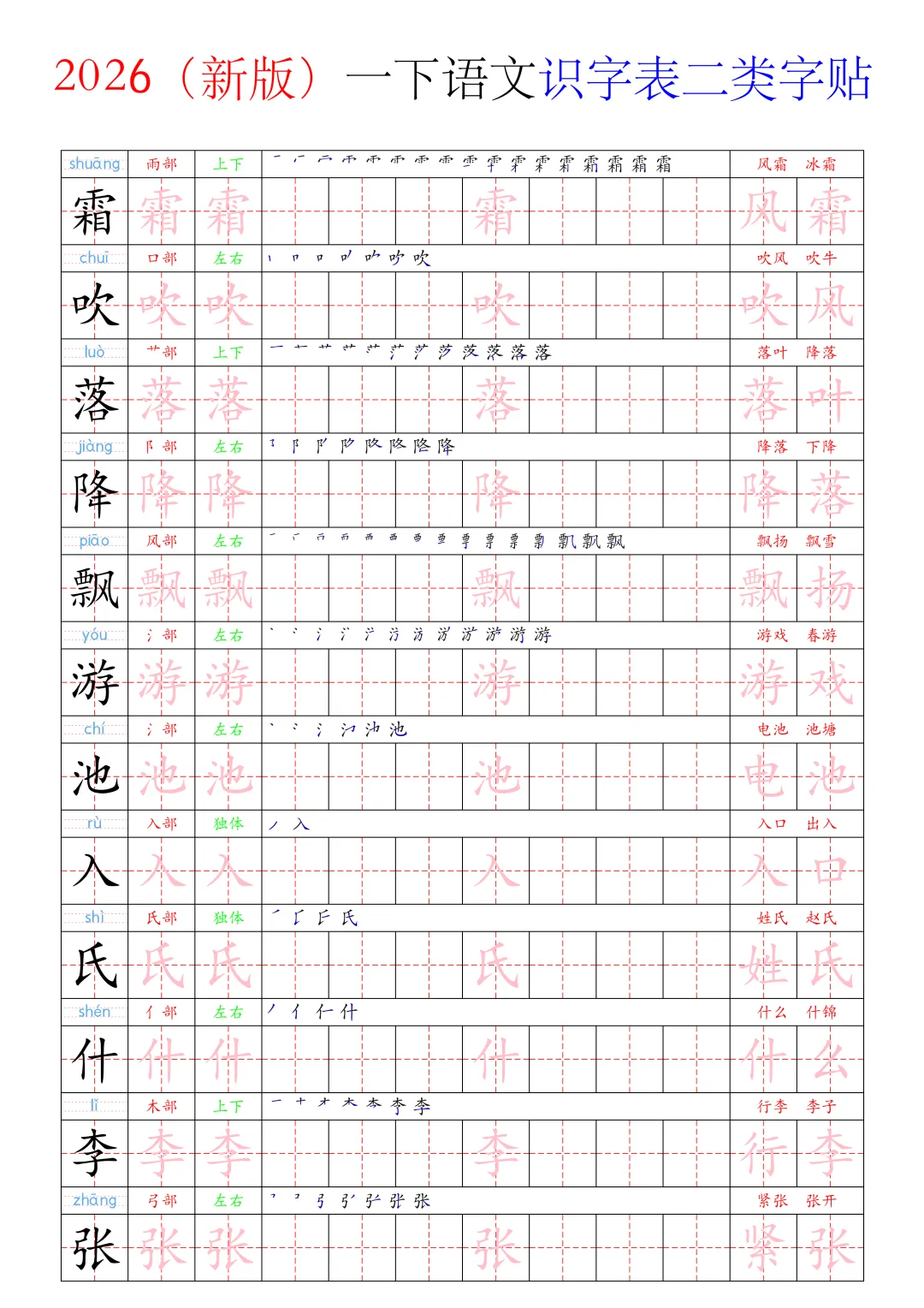 本期给大家整理的是26年一年级语文下册【识字表二类字帖】,电子版可打印,需要的家长可以打印给孩子练习巩固。