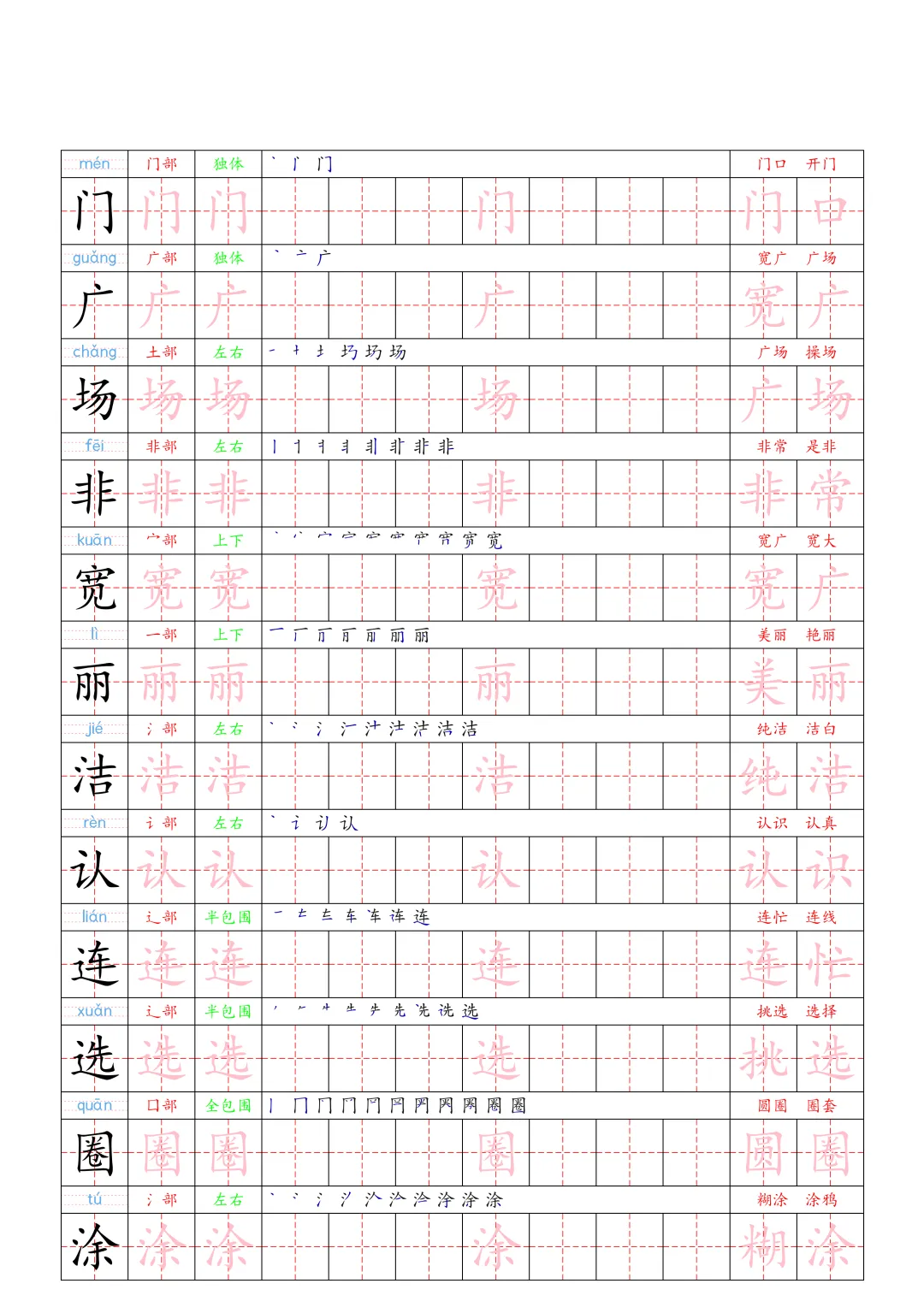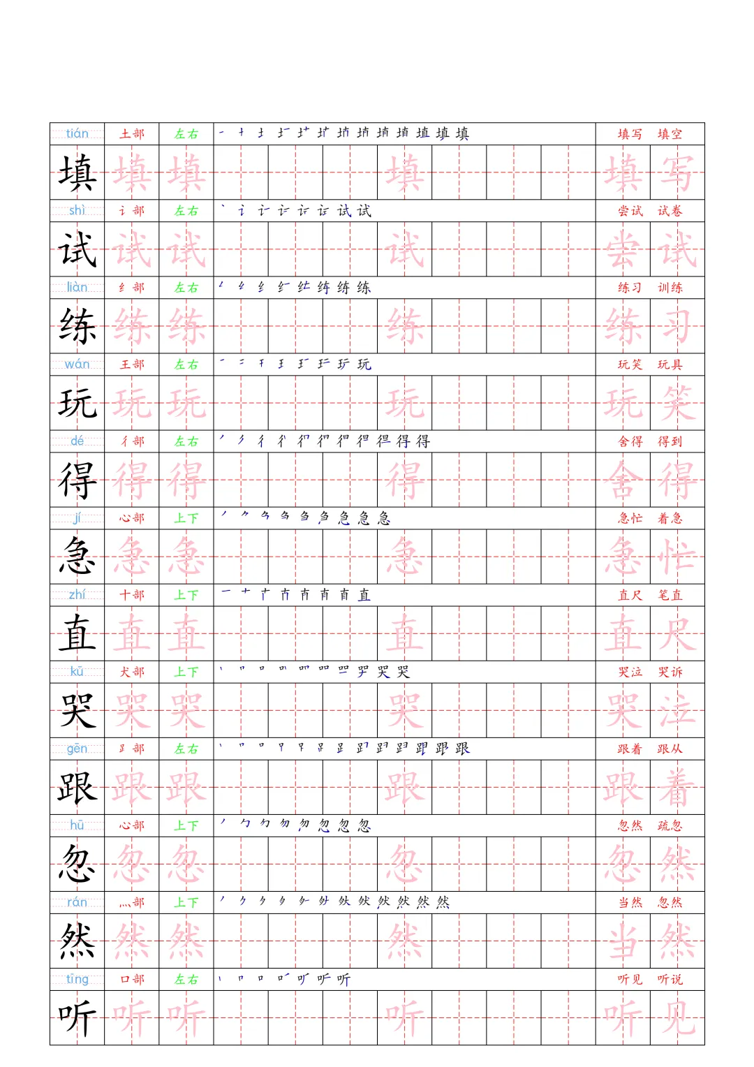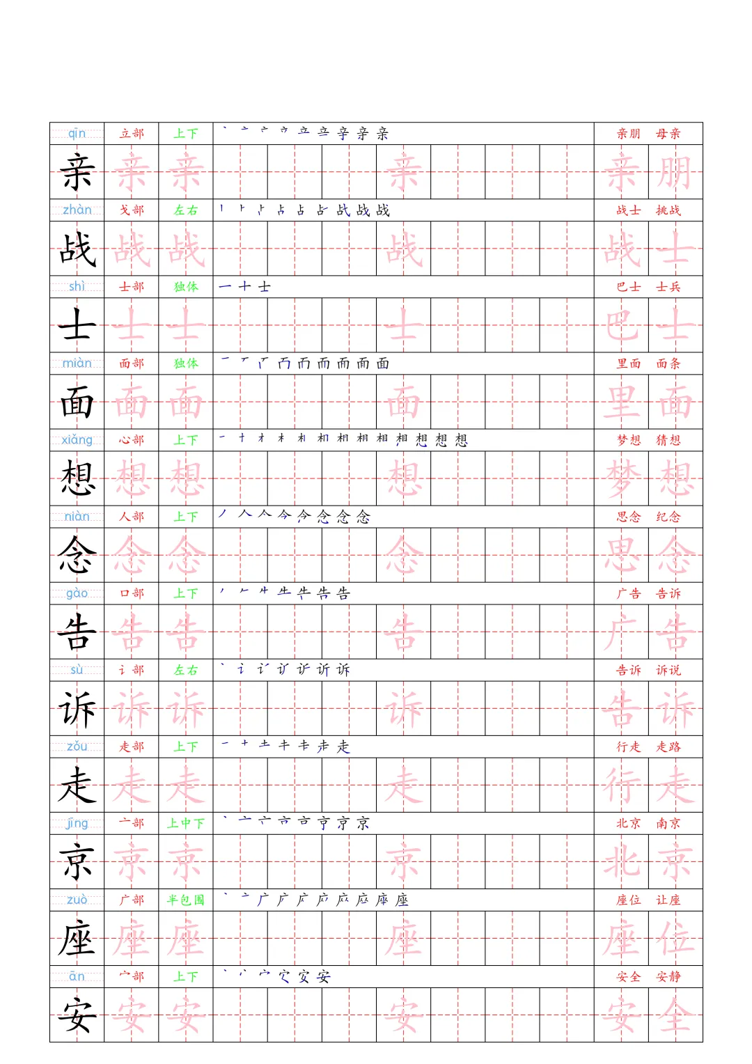 26年一年级语文下册【识字表二类字帖】,电子版可打印