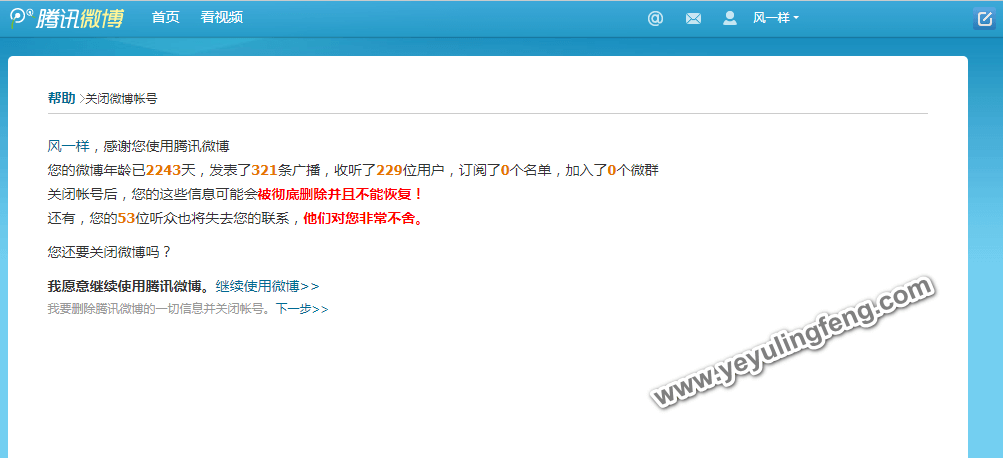 注销时频繁出错,重复几次才能继续操作,可以肯定的是微博目前保持基本运营,但没几个人维护了。建议看到这篇文章的小伙伴们备份下之前的历史遗留文件,之后肯定会有所难度。腾讯微博逐渐的也会离我们越来越远,但是个人信息还在上面,并且相关访问权限已经失效甚至找不到版块了,再见!腾讯微博!