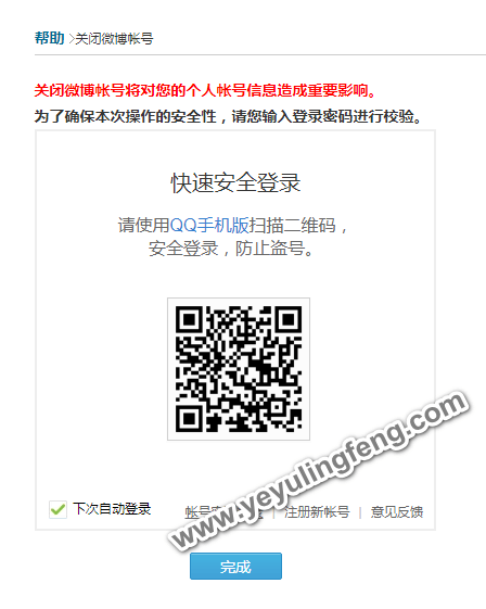 因为账号相互属于敏感操作,系统要求登录效验安全性,按照要求登陆后直接点击“完成”进入下一步