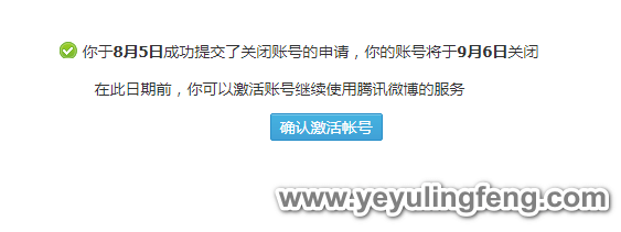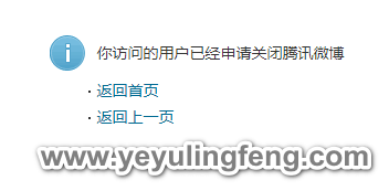 虽说是一个月后正式关闭,这里老夜用小号访问刚申请注销账号的主页时已经打不开了,直接提示“你访问的用户已经申请关闭腾讯微博”,至此大功告成,又一大安全隐患解除。