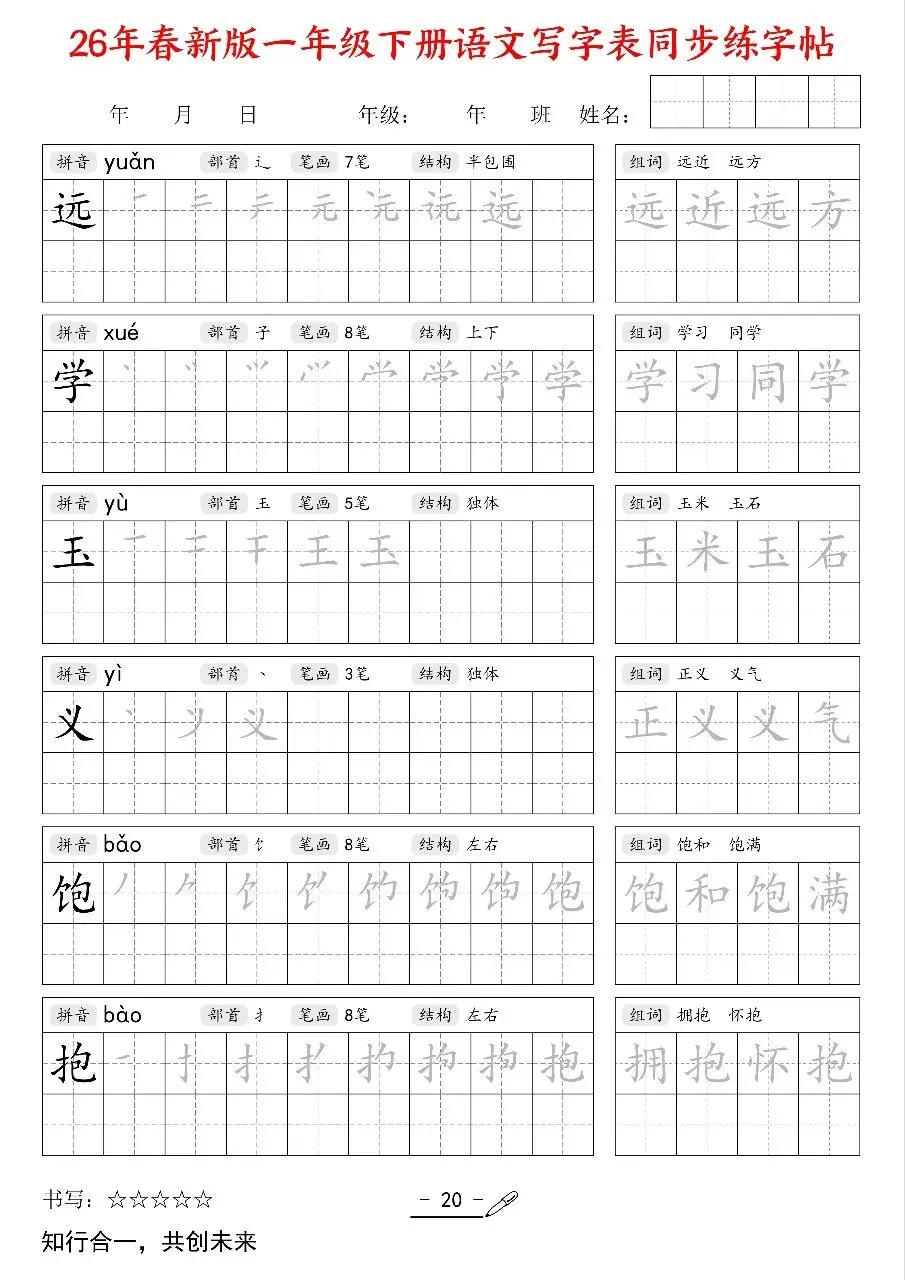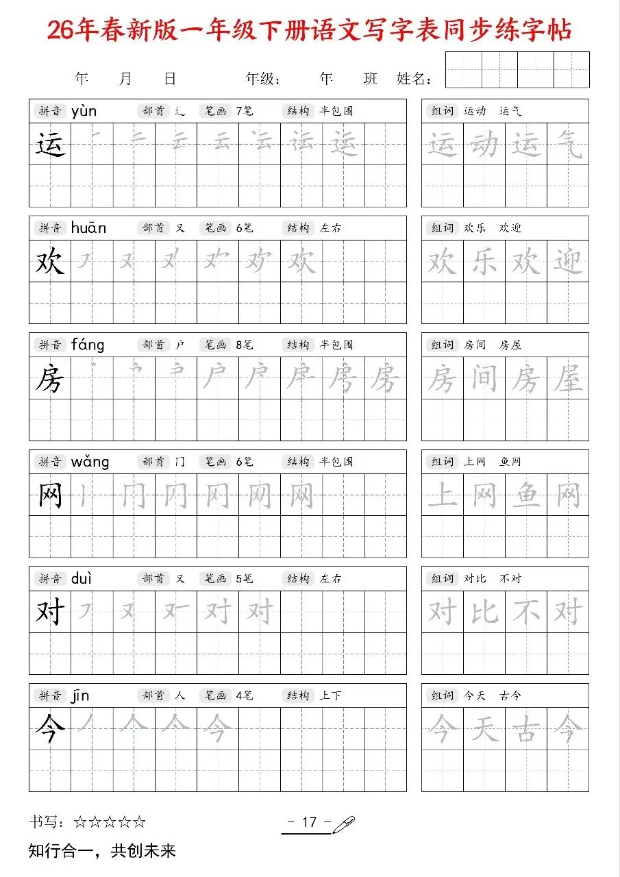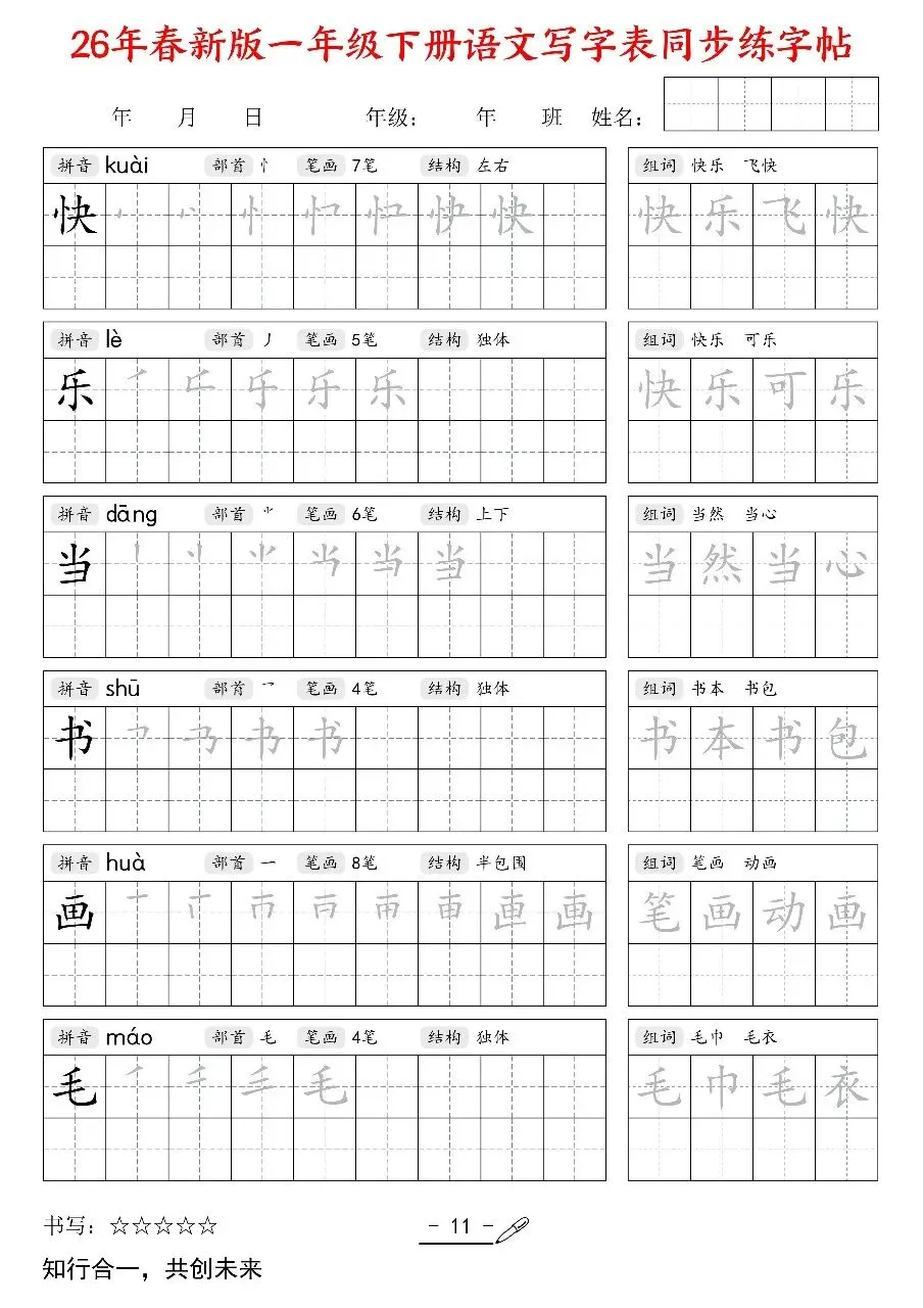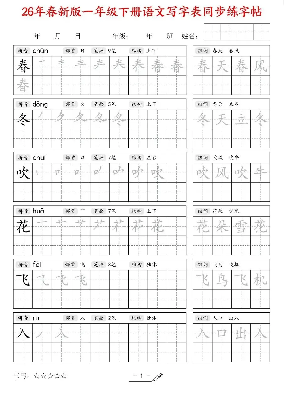 今日分享~2026新版一年级语文下册《同步练字帖》
