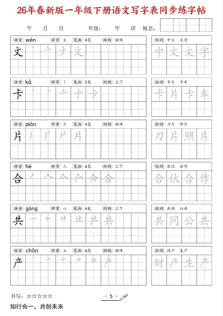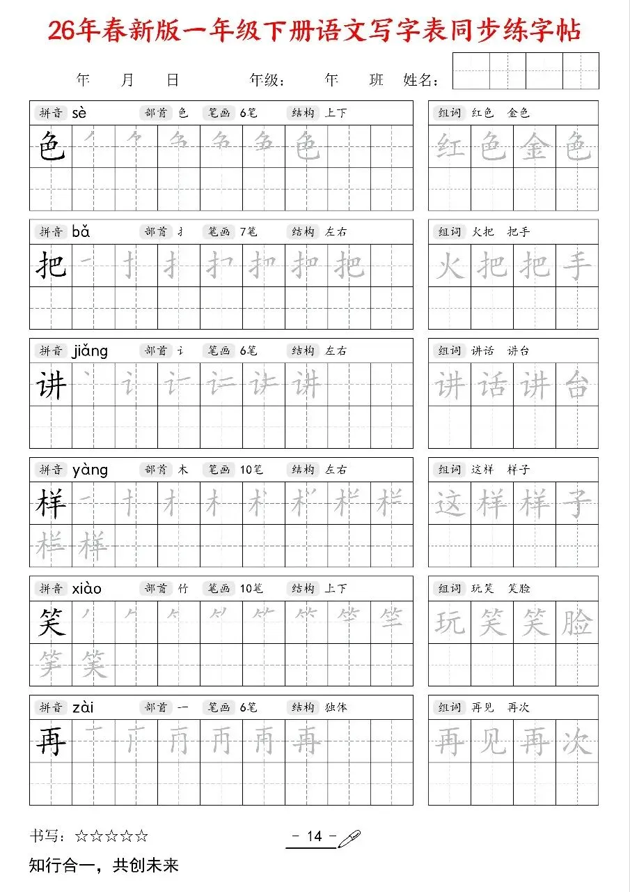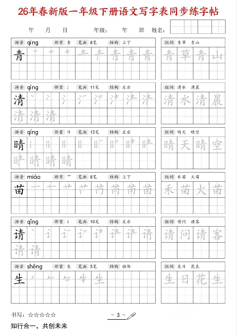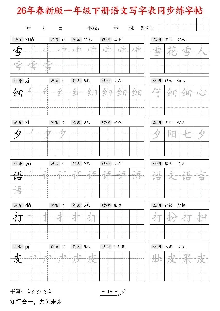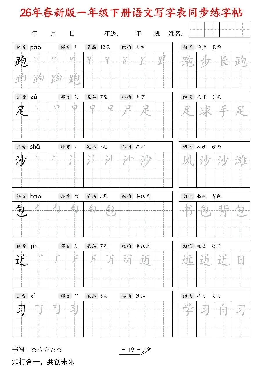 2026新版一年级语文下册《同步练字帖》电子版可打印