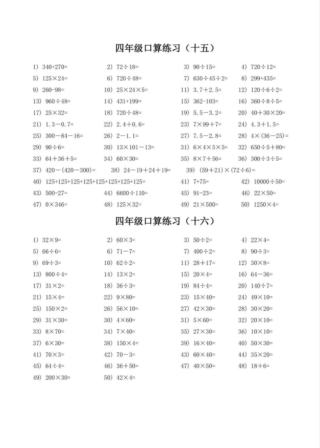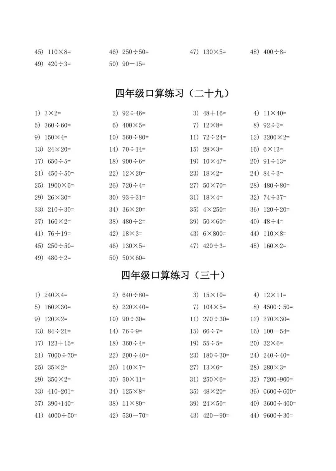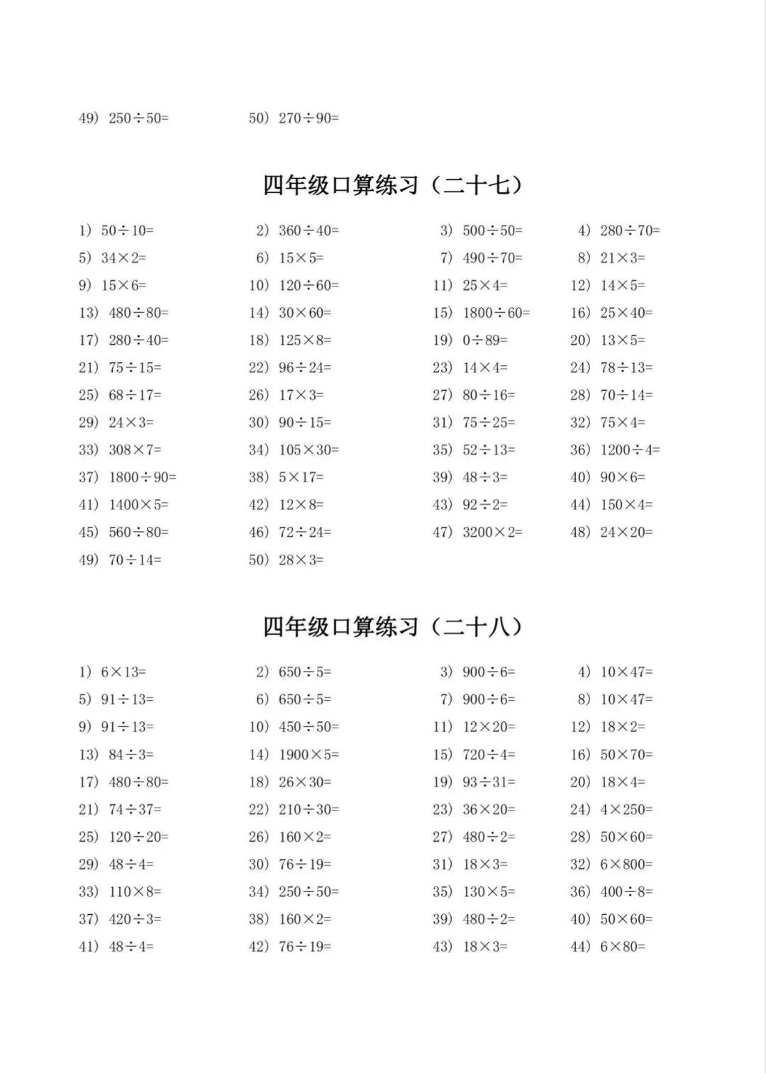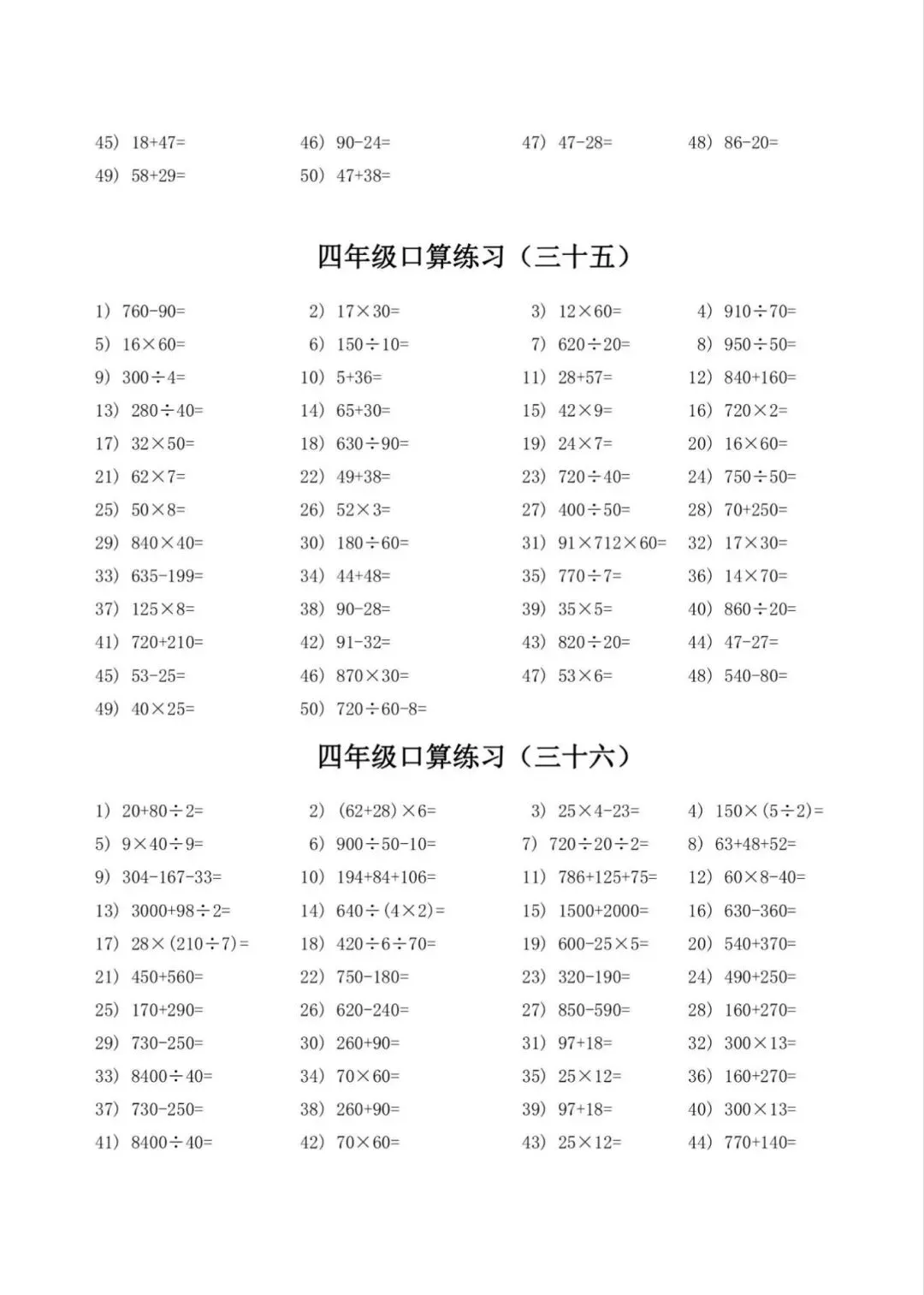 四年级下册数学口算练习题每日一练(共3000道),这份四下数学口算专项练习题,包含了小数运算、加减乘除等题型,让孩子坚持每天练一练,能够提高孩子的数学计算和口算能力,更加熟练地掌握运算规则。需要的家长抓紧打印出来,让孩子练一练吧。