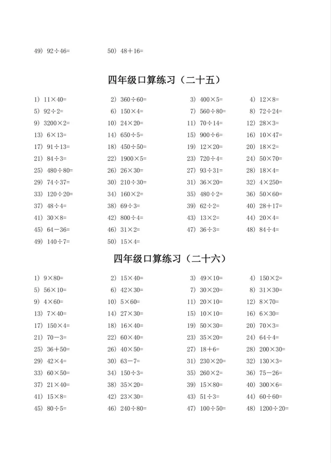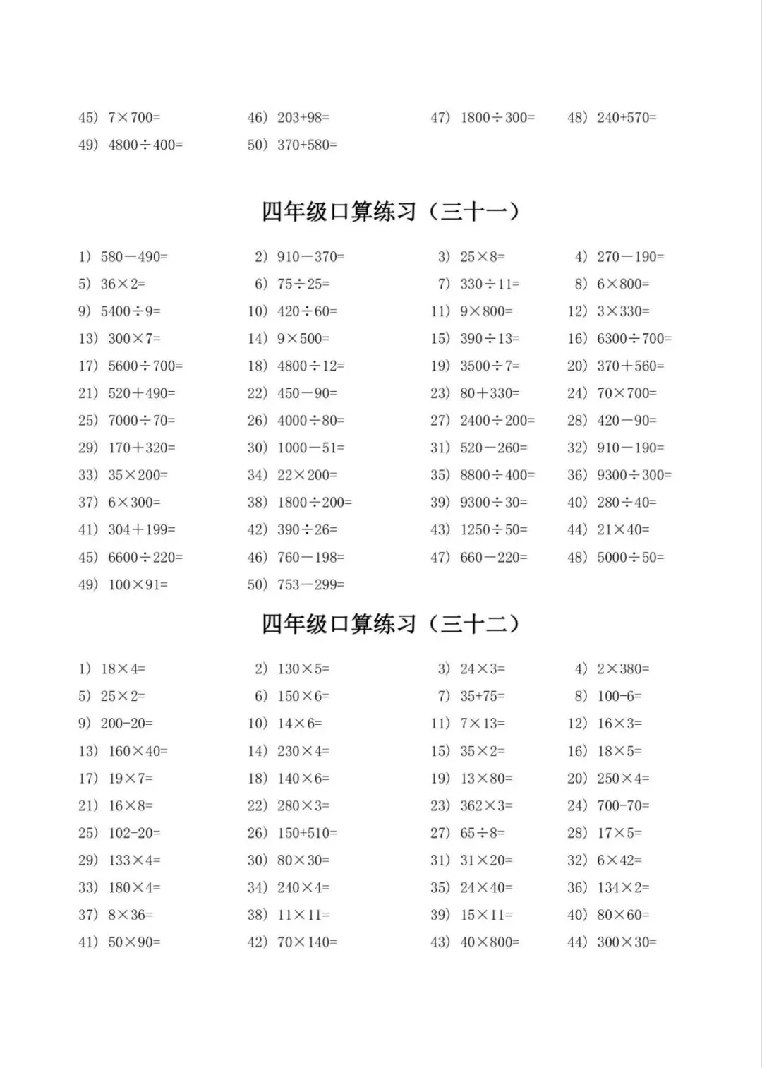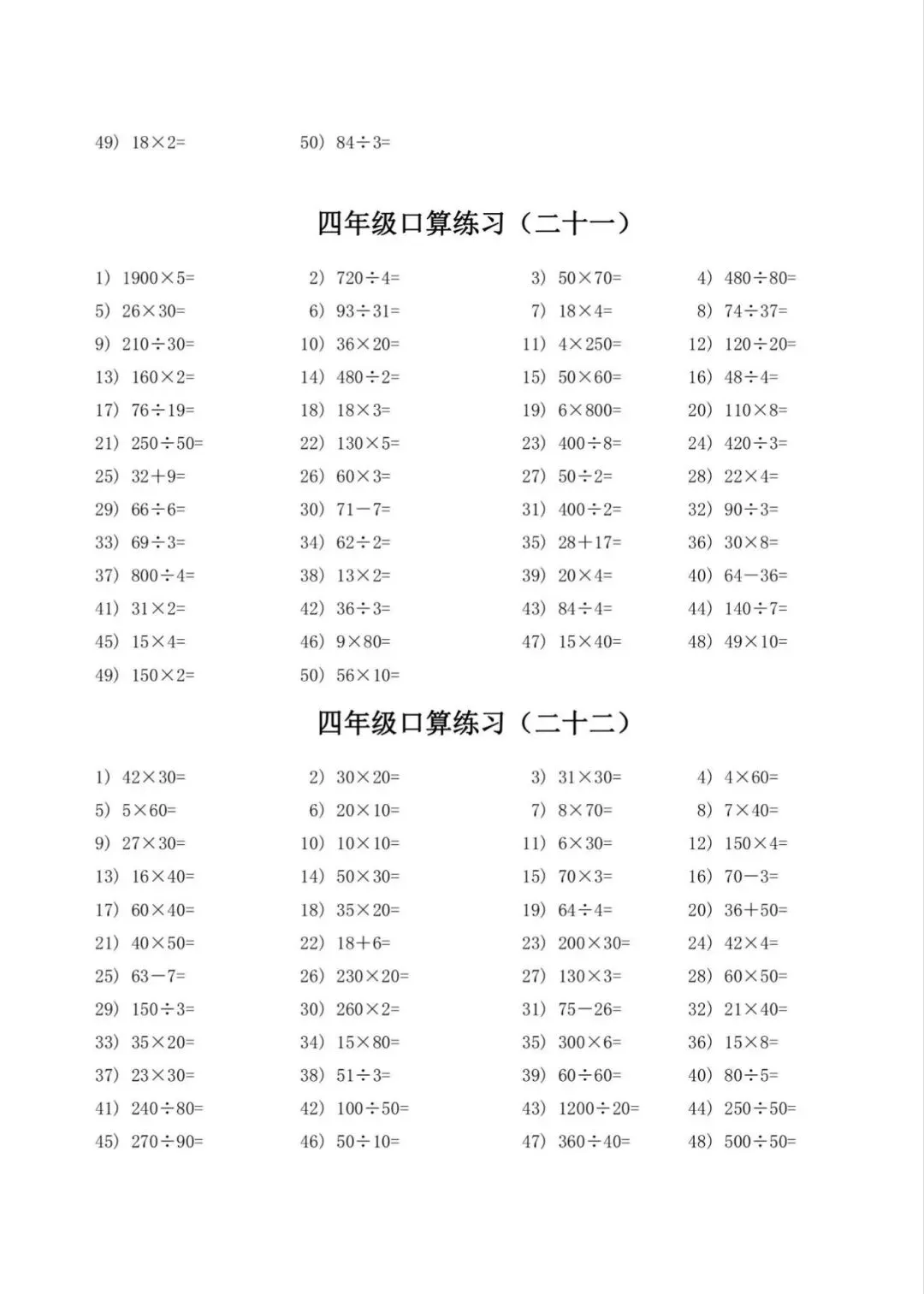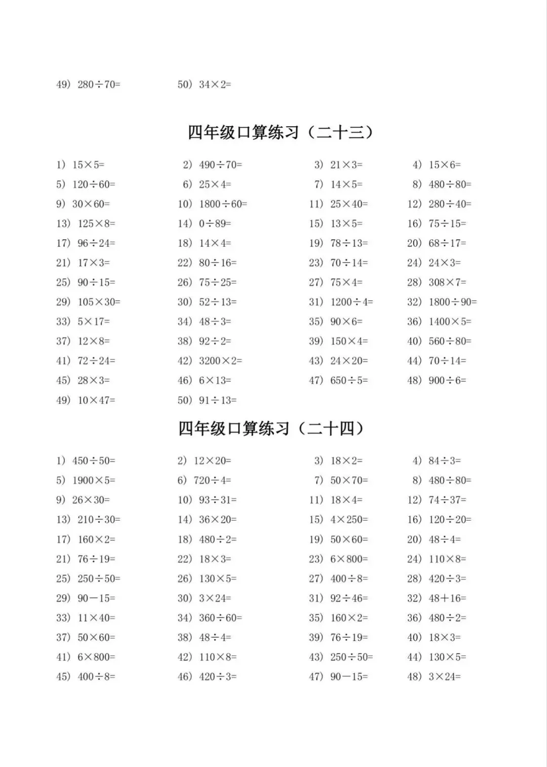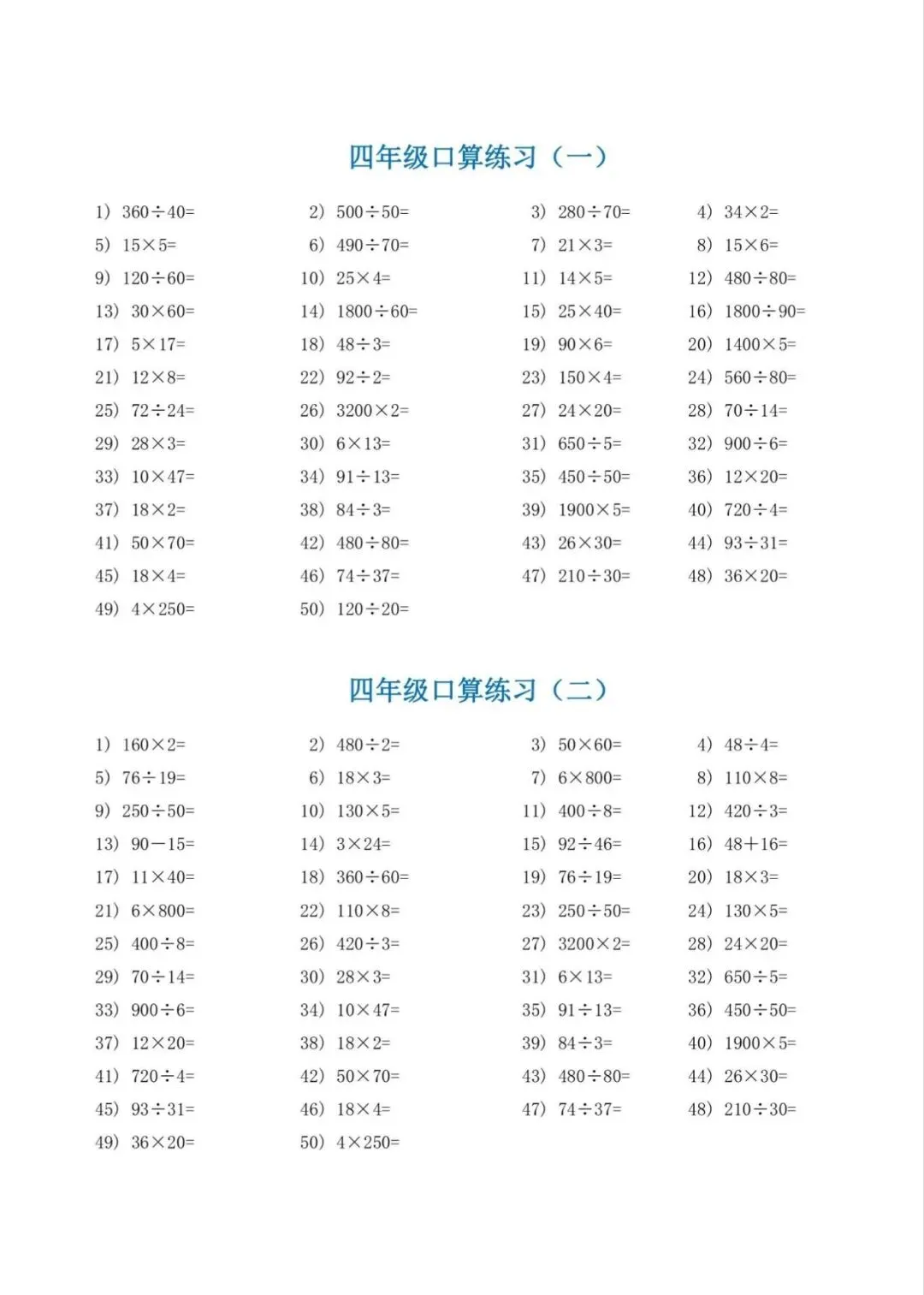 四年级下册数学口算练习题每日一练(共3000道),这份四下数学口算专项练习题,包含了小数运算、加减乘除等题型,让孩子坚持每天练一练,能够提高孩子的数学计算和口算能力,更加熟练地掌握运算规则。需要的家长抓紧打印出来,让孩子练一练吧。
