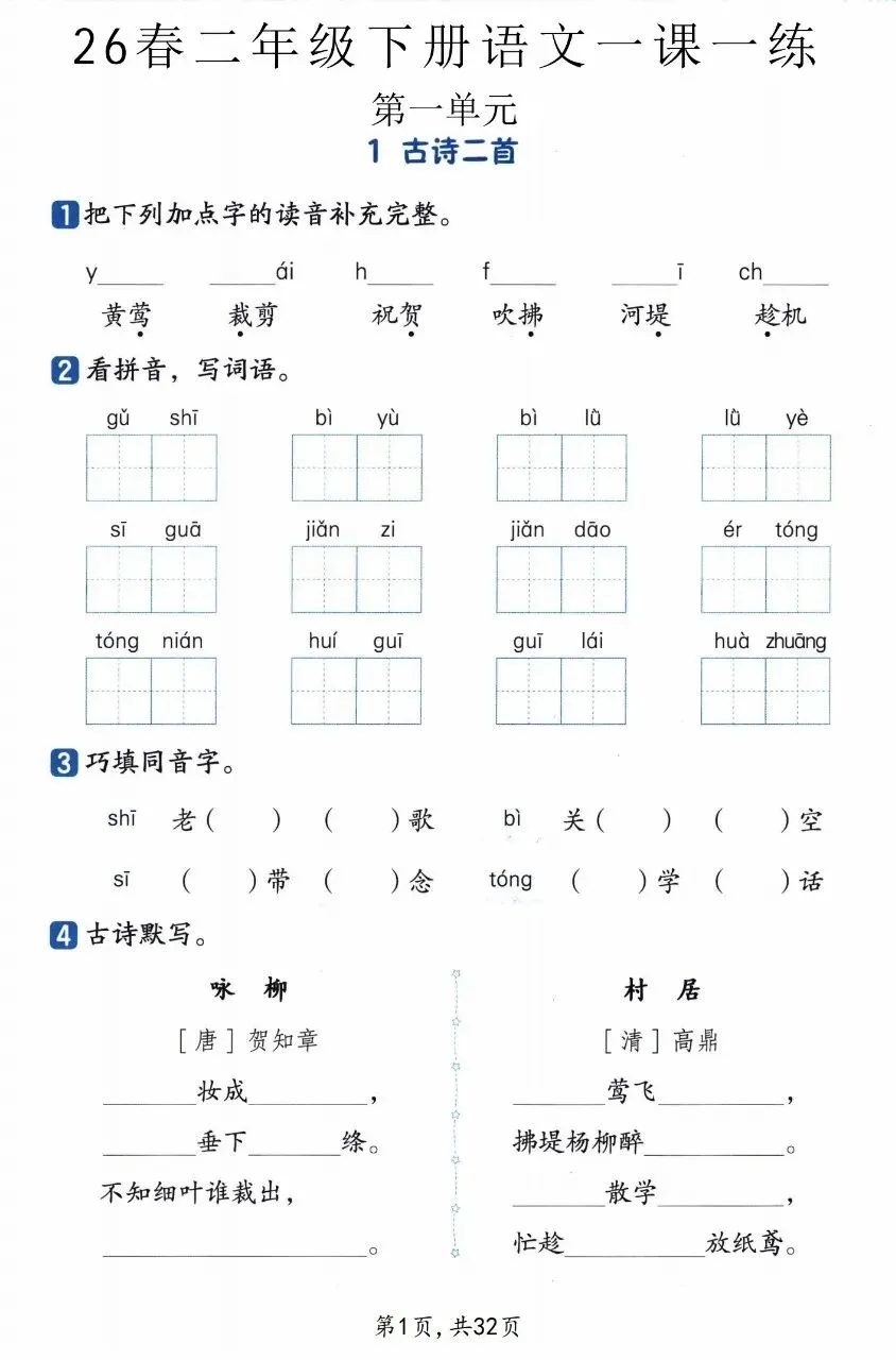 26春新二下语文基础知识一课一练(电子版可打印)