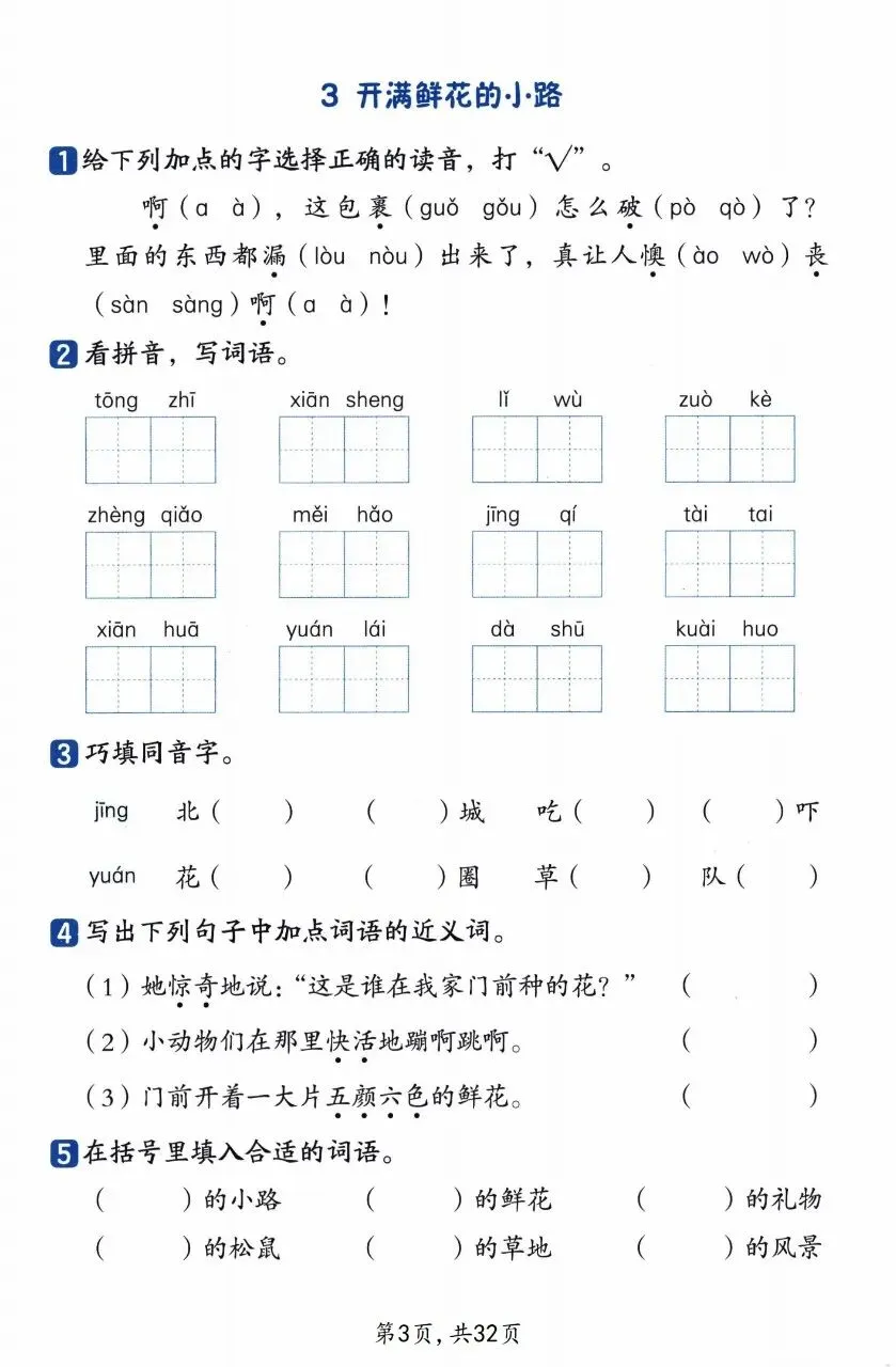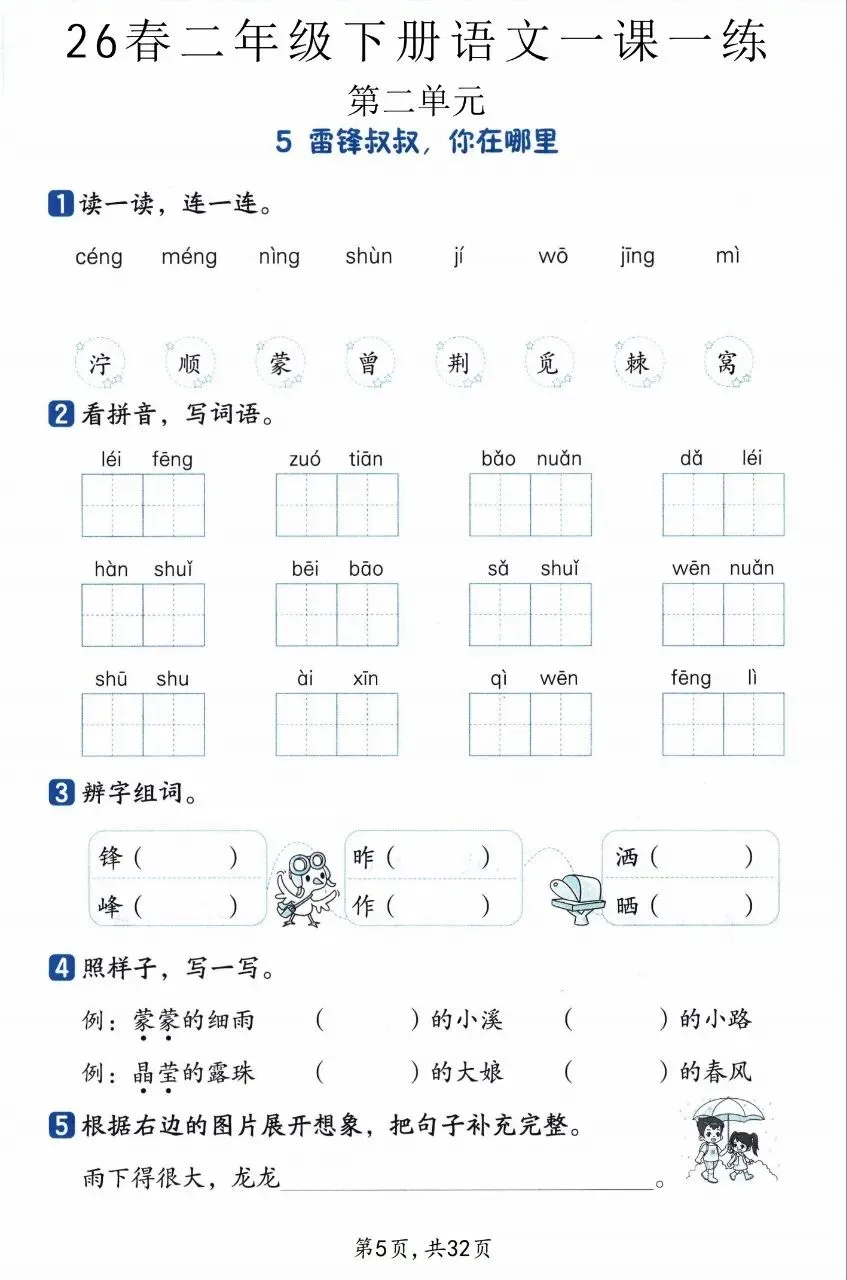 新二下语文基础知识一课一练,
