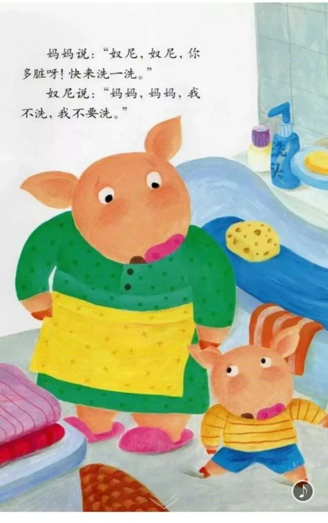 奴尼说:“妈妈,妈妈,我不洗,我不要洗。”