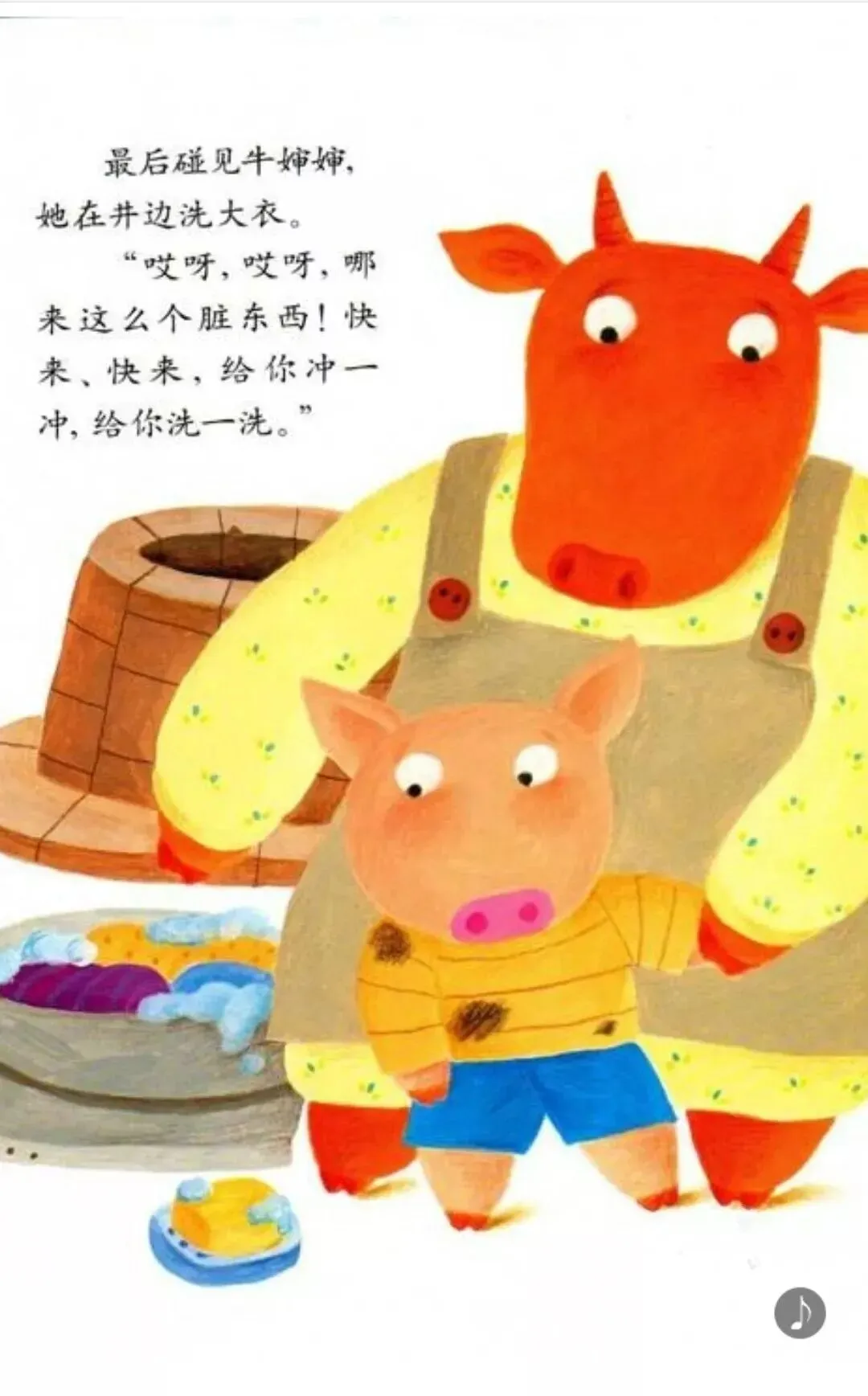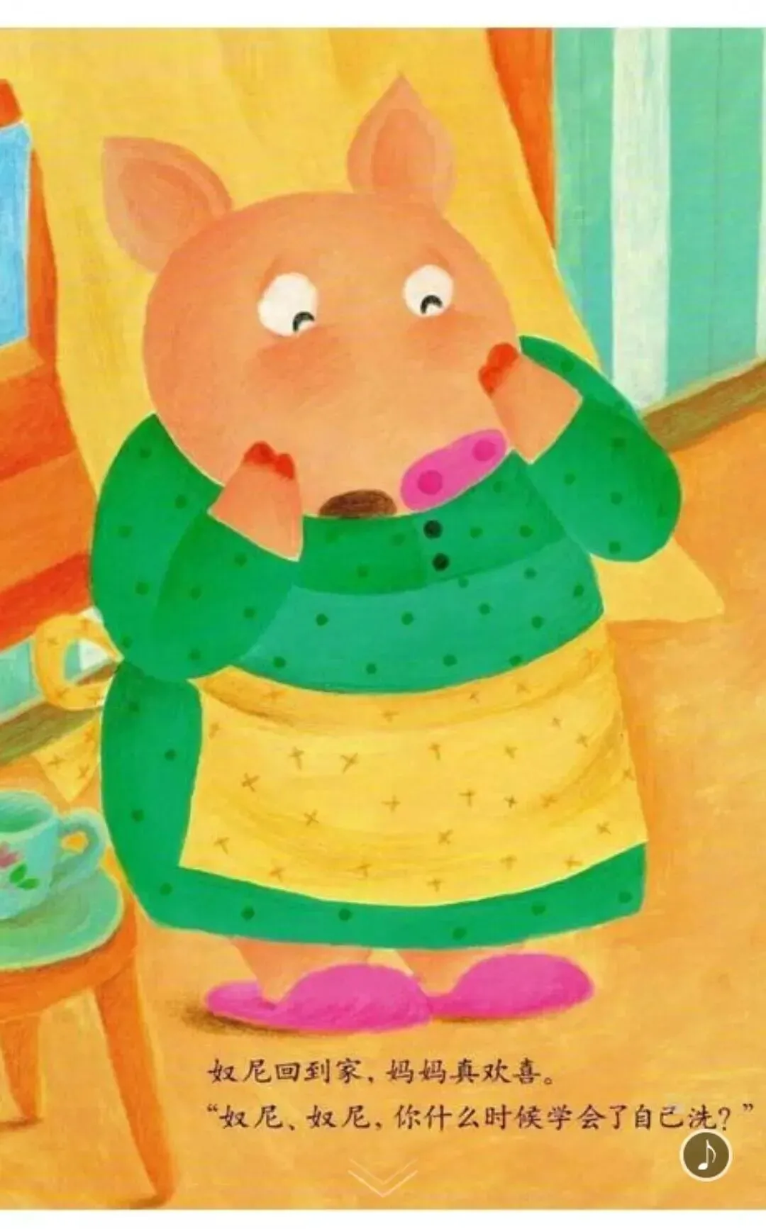 妈妈说:“奴尼,奴尼,你多脏呀!快来洗一洗。”