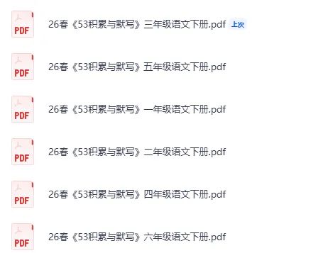 大家好,今天为大家分享的是小学语文教辅的超强资源——26春季学期1-6年级下册《53积累与默写》高清PDF电子版。这份资料对于夯实孩子语文基础、提升默写正确率非常有帮助。