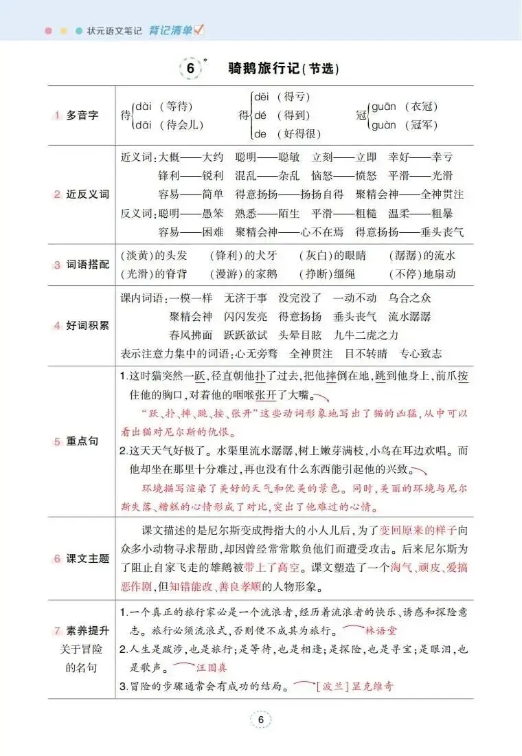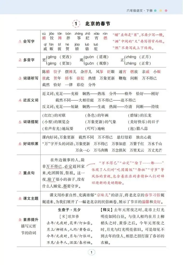 【免费下载】六年级语文下册状元笔记每课背记清单 | PDF高清电子版可打印