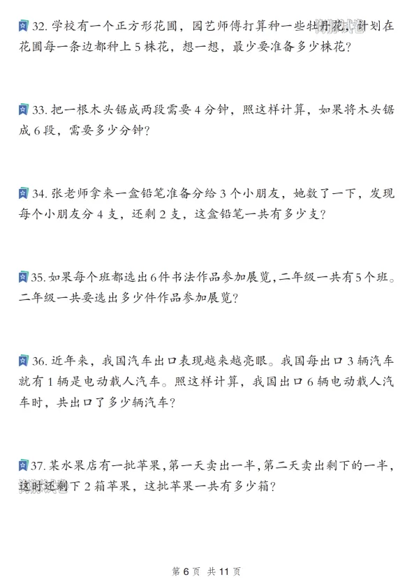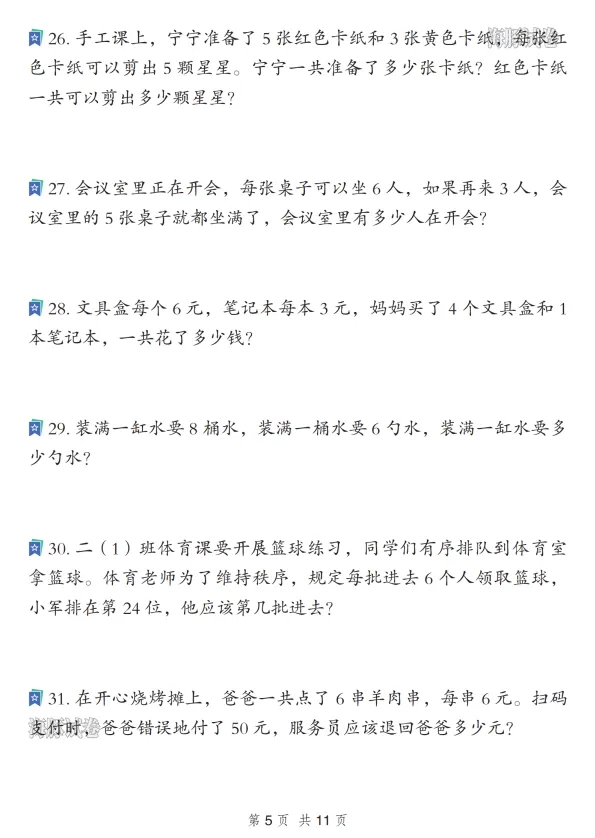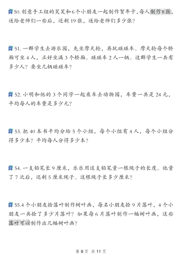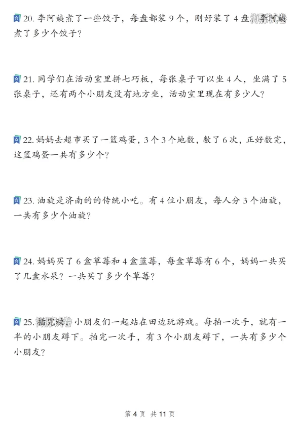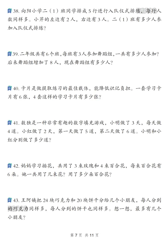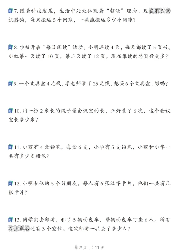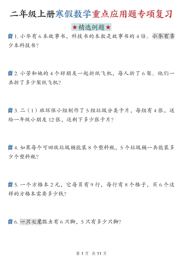 二年级数学寒假重点应用题专项复习训练,电子版可打印