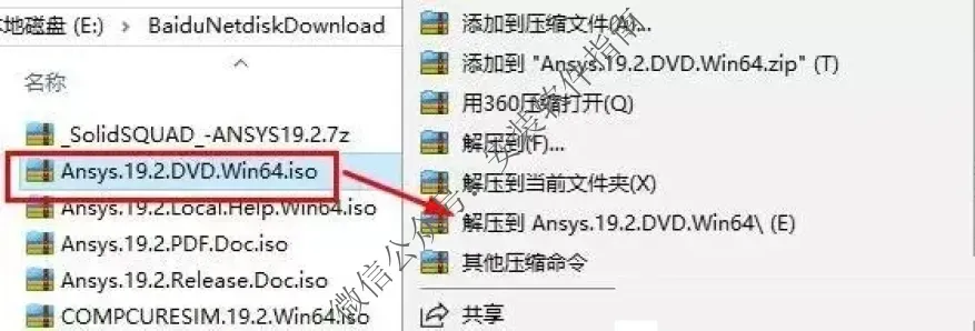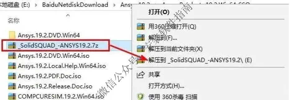 15.打开ANSYS 19.2文件夹,解压“_SolidSQUAD_-ANSYS19.2”