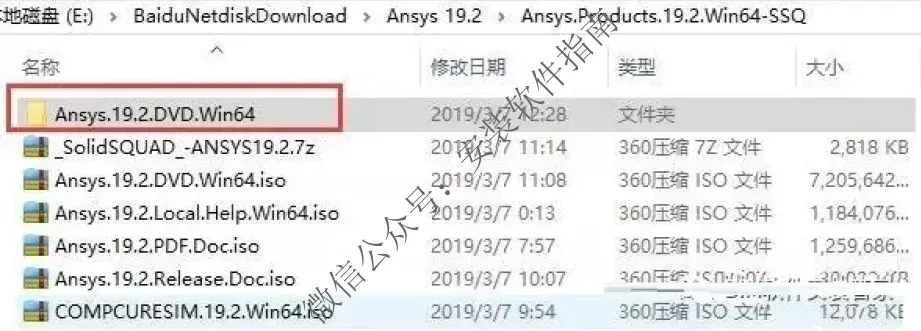 1、首先下载并解压安装包,ANSYS.19.2.DVD.Win64为安装文件,_SolidSQUAD为破解替换文件,PDF_DOCS为帮助文档,ANSYS.19.2_LOCAL_HELP_WINX64为本地帮助文件安装包;