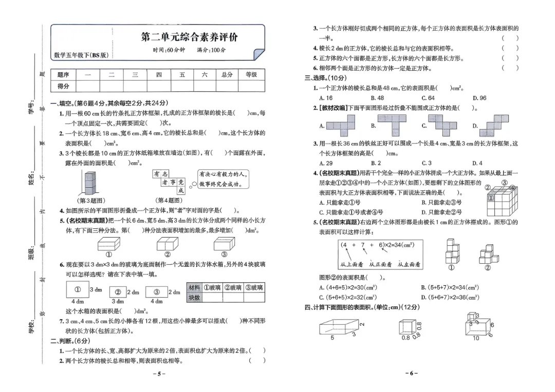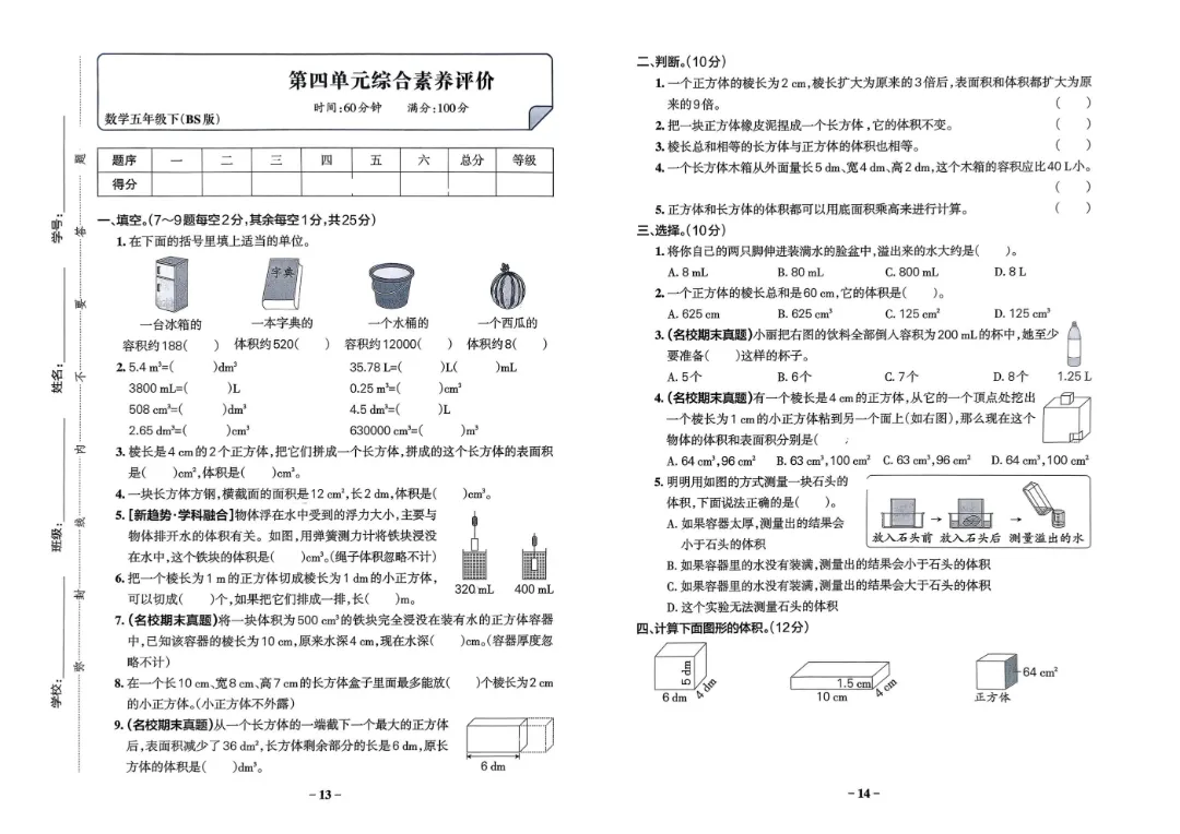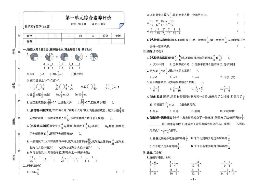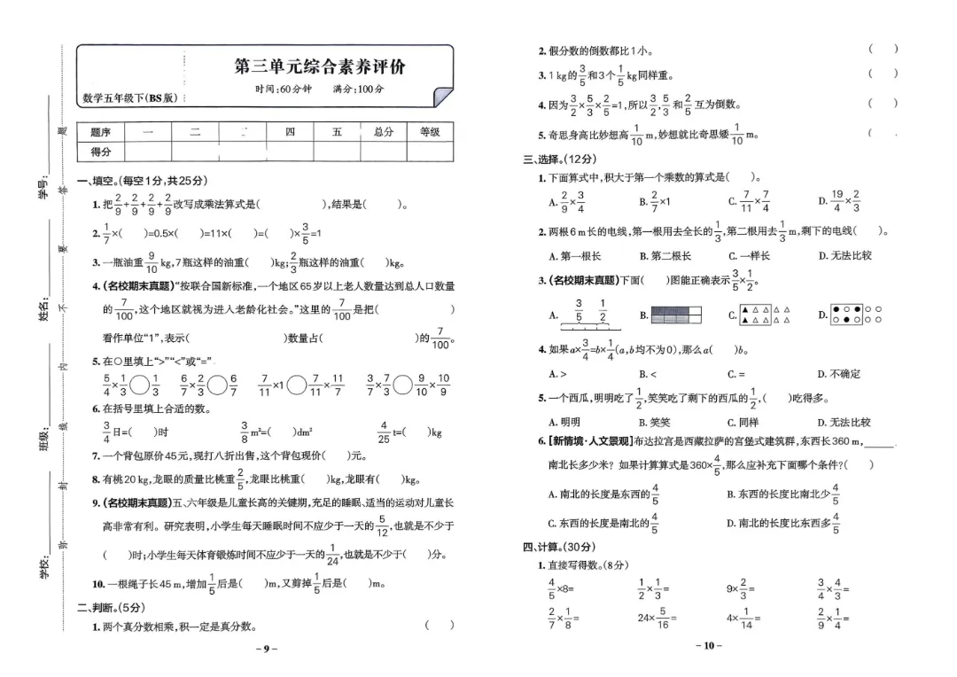 🌟今日给大家分享的:26年春新版五年级下册北师大版数学 《1-8单元素养达标卷+期中期末测试卷》(共10套含答案)电子版可打印