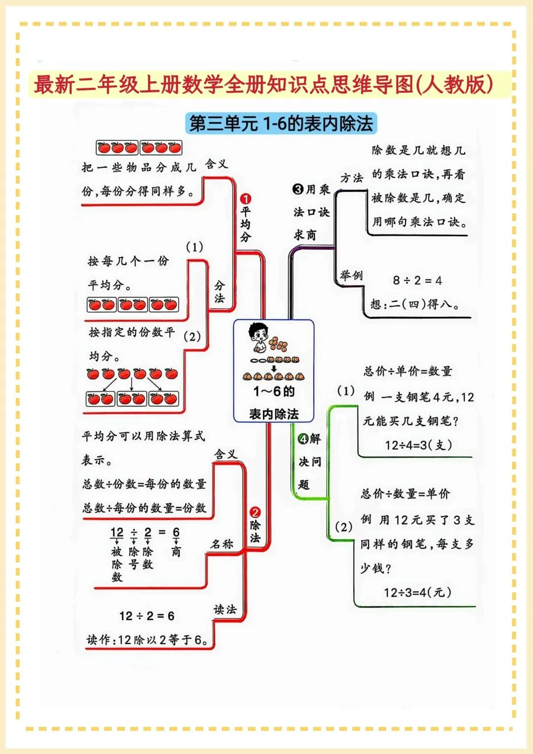 二年级上册数学思维导图人教版可打印
