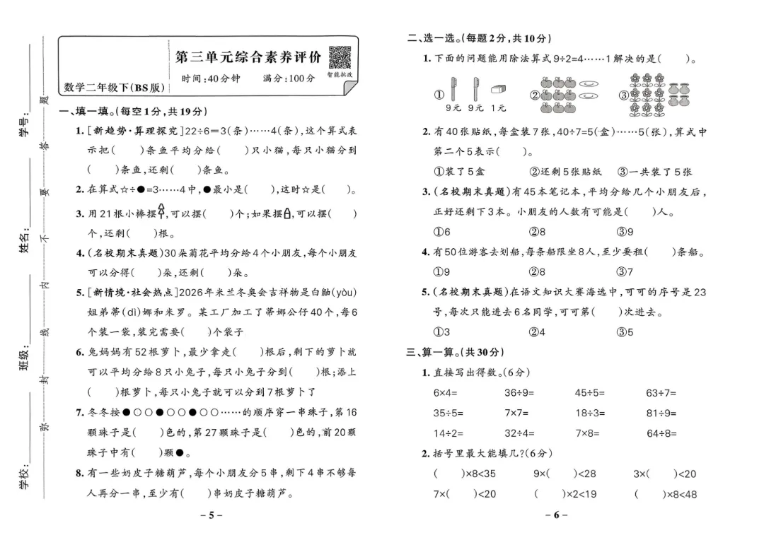 🌟今日给大家分享的:26年春新版二年级下册北师大版数学 《1-7单元素养达标卷+期中期末测试卷》(共10套含答案)电子版可打印