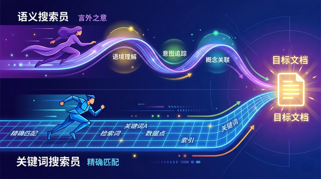 单纯匹配字符早已不够看,目前的顶配 RAG 都在开着双重引擎: