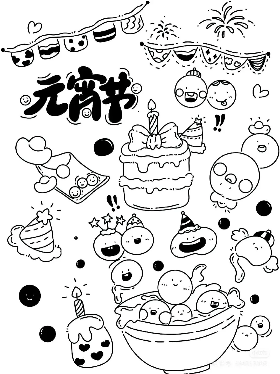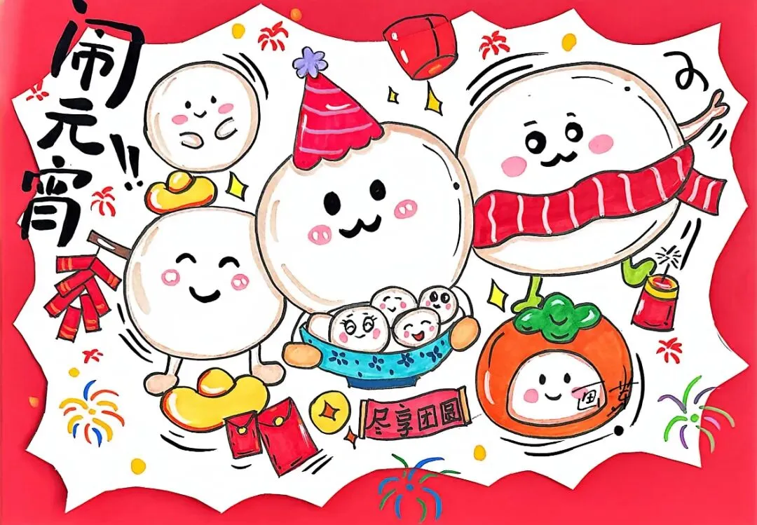 3. 细节刻画:在色彩填充的基础上,进一步刻画细节,如元宵的纹理、灯笼的装饰、烟火的绽放等,使画面更加生动逼真。